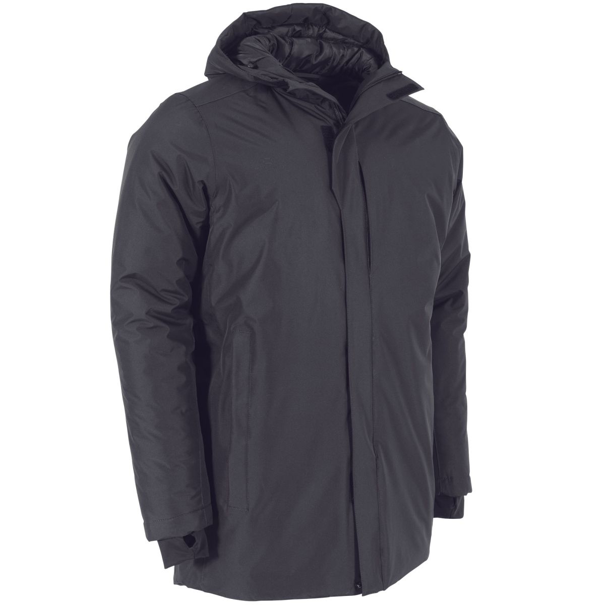 Die Prime Coachjacke besteht aus 100% Polyester mit PVC-Beschichtung und hat ein isolierendes Innenfutter. Die Jacke hat einen halblangen Schnitt mit einem längeren Rücken und verfügt über eine Frontklappe, die Dich vor Wind schützt. Diese wasser- und windabweisende Jacke verfügt zudem über Stanno-Logos auf Brust und Rücken. Der hochwertige SBS-Frontreißverschluss wird mit einer Sturmklappe mit Velcro-Klettverschluss und Druckknöpfen geschlossen. Auch die geräumigen Taschen werden mit SBS-Reißverschlüssen verschlossen.