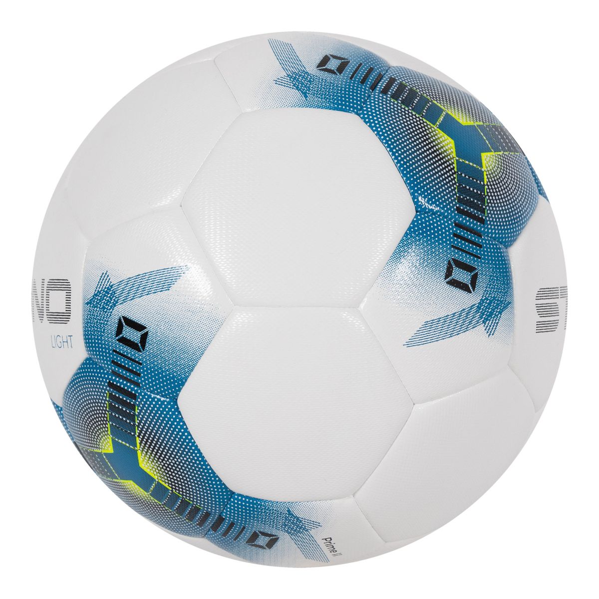 Der Stanno Prime Light II ist ein ausgezeichneter Trainingsball für junge FußballerInnen. Der Ball ist doppelt vernäht und besteht aus 32 Panels. Der Ball hat sehr gleichmäßige Flugeigenschaften und ein hervorragendes Rücksprungverhalten. Der Stanno Prime Light II ist aus weichem PU-Material gefertigt und in den Größen 4 und 5 erhältlich. Beide Größen wiegen 350 Gramm.