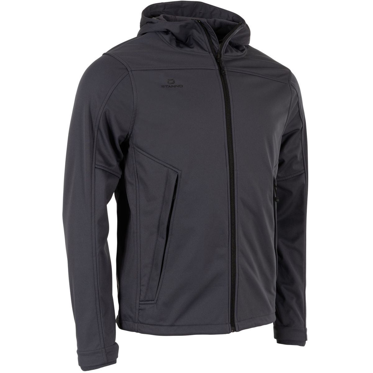 Diese Stanno Prime Softshelljacke ist wasser- und windabweisend, aber trotzdem atmungsaktiv. Diese Jacke hat einen hochtaillierten Kragen und eine Kapuze mit elastischer Kordel. Die Jacke kann mittels eines hochwertigen SBS-Reißverschlusses mit einer Sturmklappe verschlossen werden. Die Seitentaschen bieten genug Stauraum für Deine Habseligkeiten. Diese Jacke hat eine längere Rückseite und verfügt über Stanno-Logos auf der rechten Brust und dem Rücken. Die Stanno Prime Softshelljacke hat außerdem einen gerippten Saum an den Enden der Ärmel für zusätzliche Wärme und Komfort.Veredelung: Bestickung, Bedruckung, Beflockung