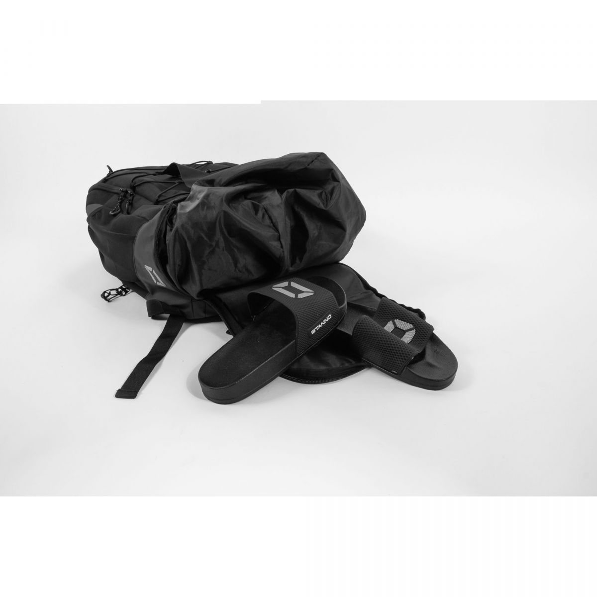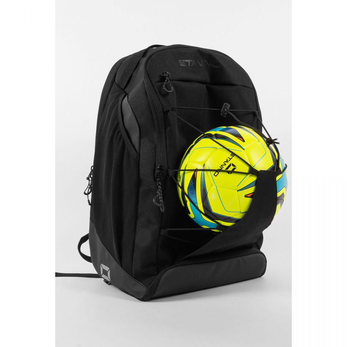 Dieser Rucksack von Stanno hat zwei Seitentaschen aus Netzmaterial und mehrere kleine Innentaschen. Neben dem Hauptfach verfügt der Rucksack über eine praktische Gesäßtasche. Ideal zum Beispiel für Ihren Laptop. Dank der Schnur an der Vorderseite der Tasche kannst Du problemlos einen Ball oder Deine Jacke mitnehmen. Durch den gepolsterten Rücken liegt die Tasche angenehm auf dem Rücken. Der Stanno Sports Backpack XL hat Zwei-Wege-Reißverschlüsse und verstellbare Schultergurte. Die Tasche enthält auch reflektierende Details für eine bessere Sichtbarkeit im Dunkeln. Abmessungen: 48x31x23 cm (HxBxT).