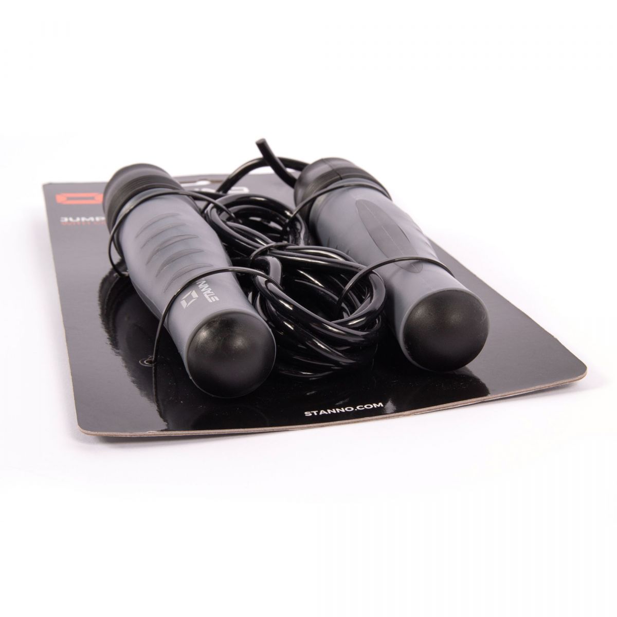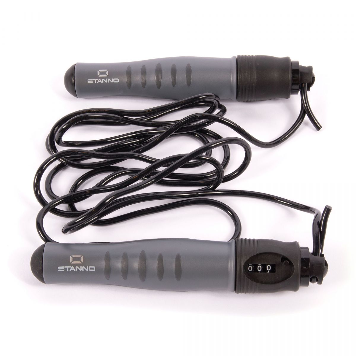 Springseil aus PVC/TPR mit integriertem Sprungzähler. Die Länge des Springseils kann leicht eingestellt werden. Die Handgriffe sind mit rutschfestem Material versehen.