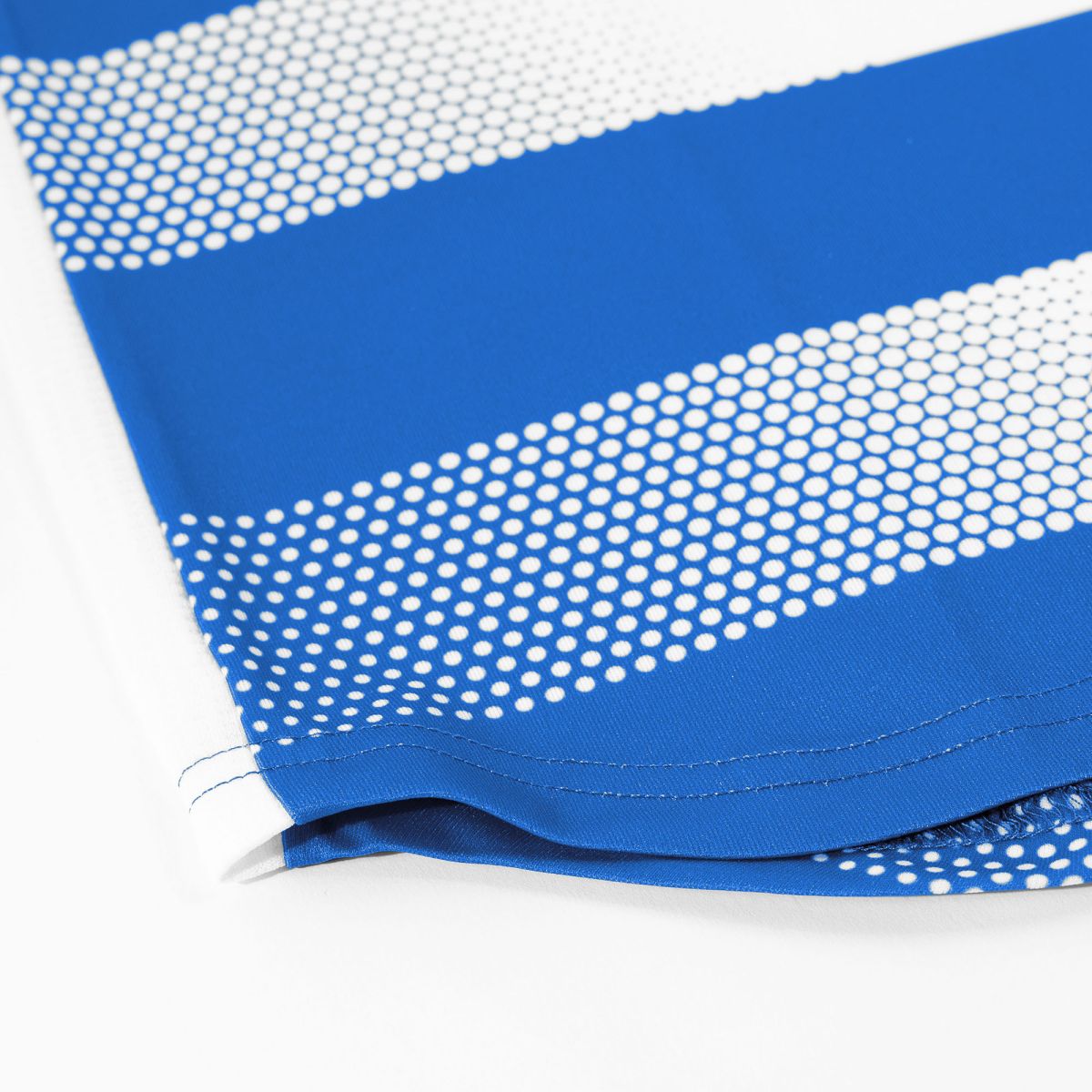 Dieses Stanno Aspire Trikot besteht aus 100% recyceltem Polyester mit ClimaTec-Finish und verfügt über ein sublimiertes Muster mit vertikalen Streifen. Auf der Vorderseite des Trikots befindet sich eine 20 cm hohe Sponsorenfläche. Das Shirt verfügt über Stanno-Logos und eine Mesh-Struktur, die für einen optimalen Feuchtigkeitstransport sorgt. Das Trikot hat zudem doppelte Nähte, die das Trikot extra widerstandsfähig machen.Veredelung: Bestickung, Bedruckung, Beflockung
