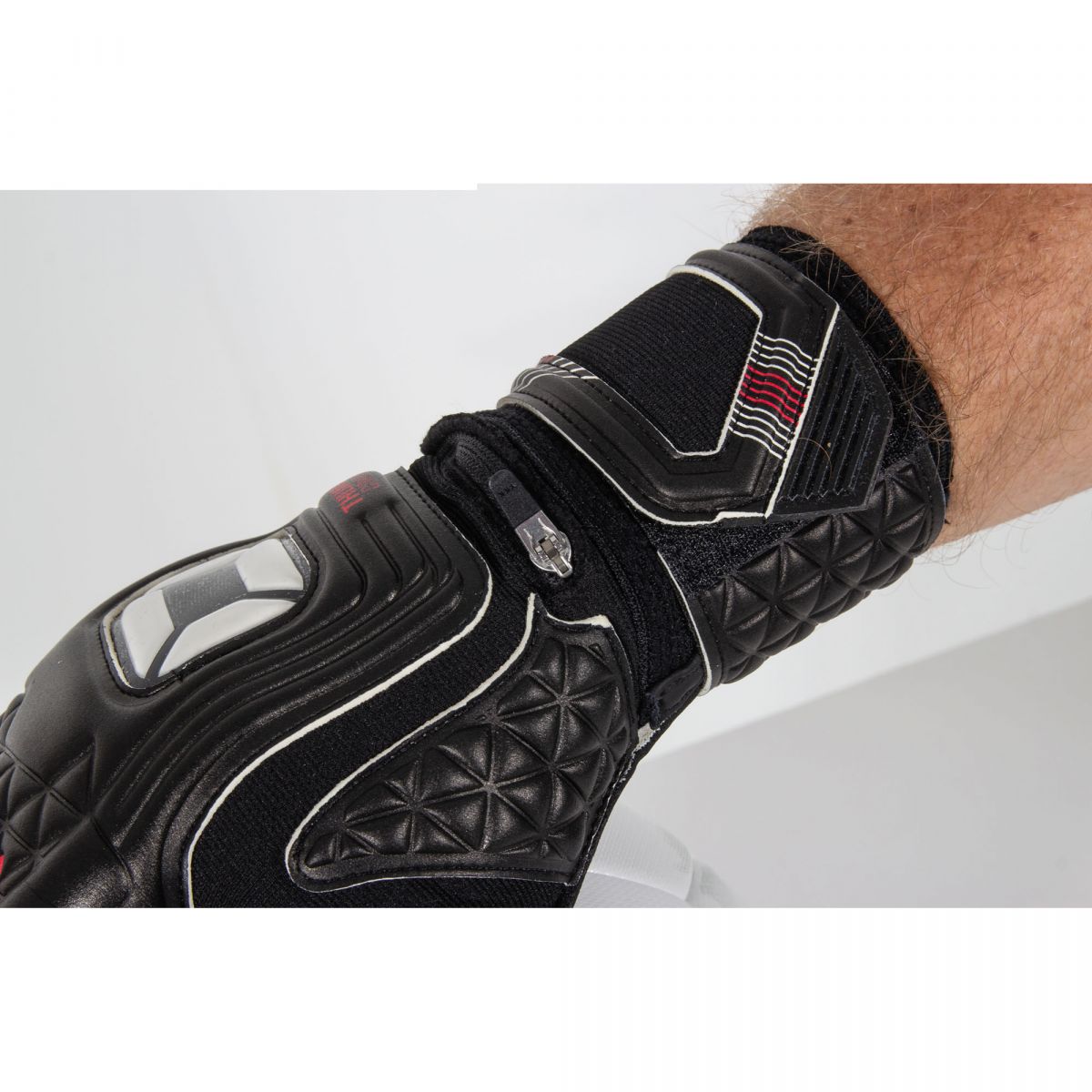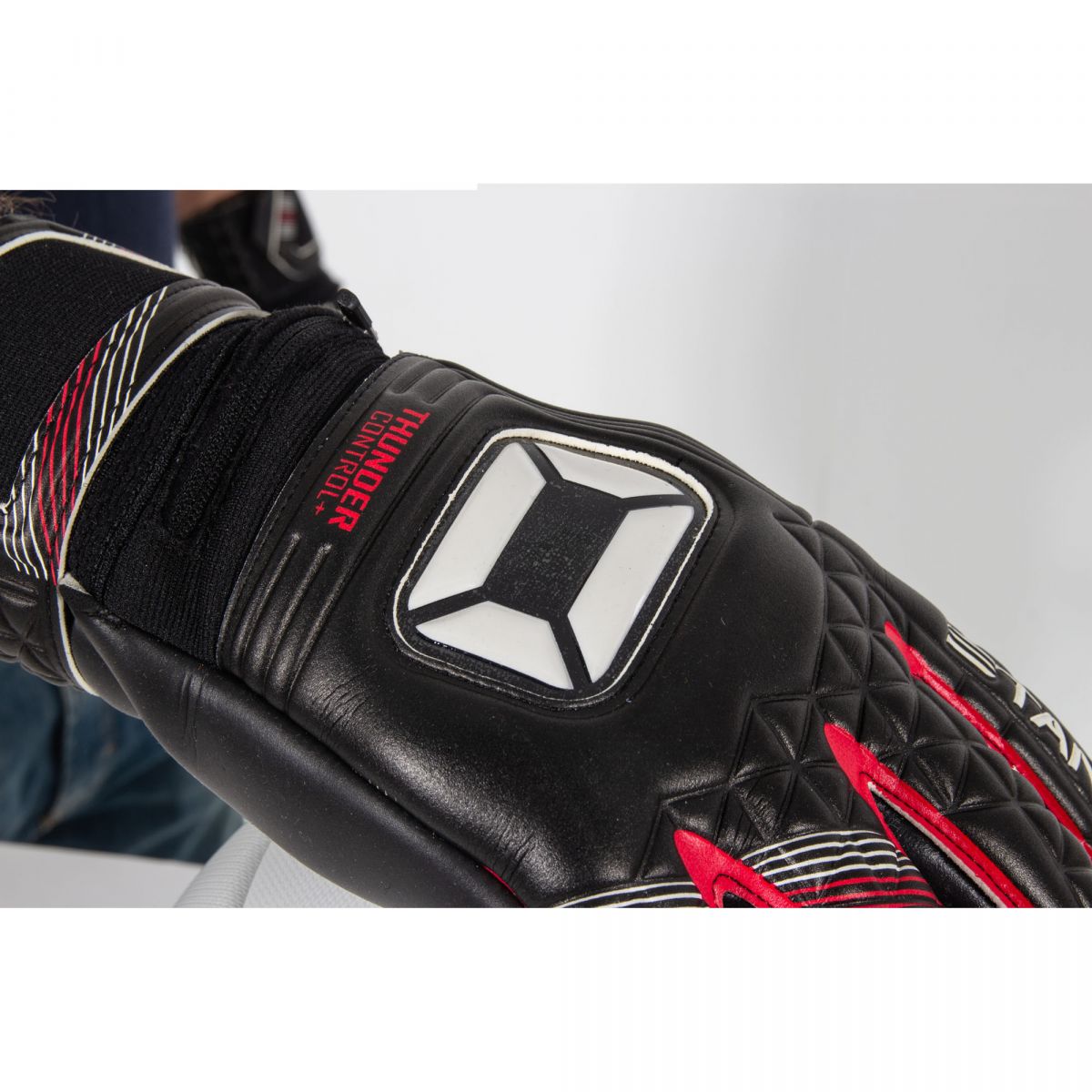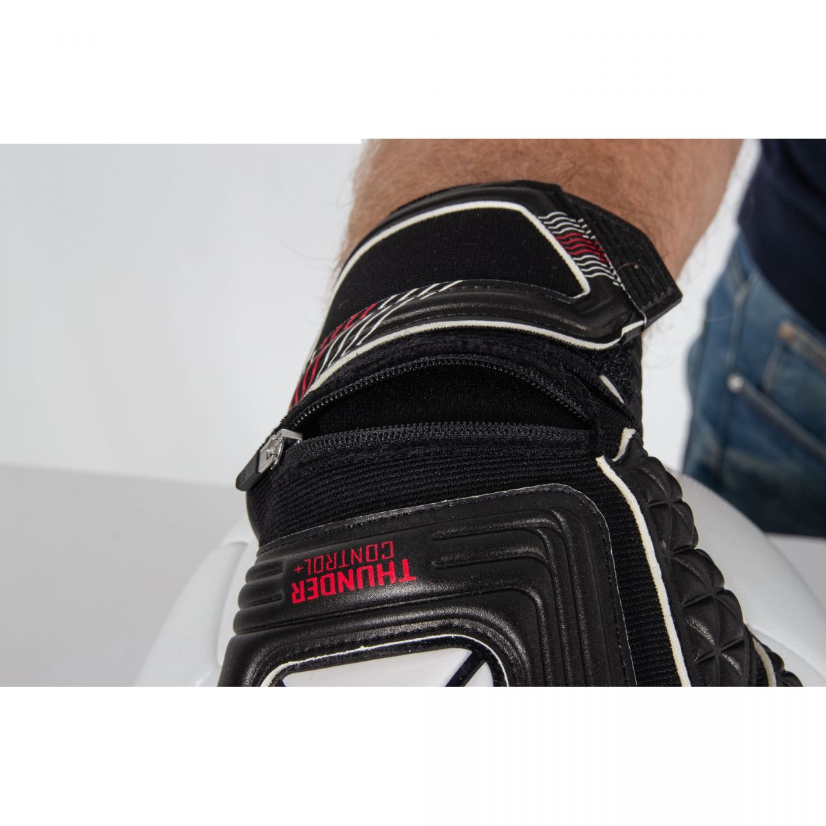 Der Stanno Thunder V mit Super Soft Profi-Schaum ist ein professioneller Handschuh für allerbeste Torwartleistung unter allen Witterungsbedingungen. Der Handschuh bietet Flexibilität beim Fangen, Fausten und Abwerfen. Der üppige Silikonaufdruck verleiht einen exklusiven Look und der Neopreneinsatz an der Oberseite sorgt für eine perfekte und flexible Passform. Mit Fingerschutz: Flexible, harte Stäbchen gewährleisten einen optimalen Schutz der Finger. Die Versteifungen können durch einen kleinen Reißverschluss an der Oberseite des Handschuhs entfernt werden. Der Handschuh hat eine flach gearbeitete Hand und ist im Spiegelbild genäht: Die Nähte verlaufen an der Innenseite der Finger, wodurch der Handschuh die Finger fest umschließt. Das sorgt für größere Ballkontrolle des Torwarts. Das gewebte Bündchen (mit einer Freifläche für den Namensaufdruck) sorgt für zusätzliche Stabilität.