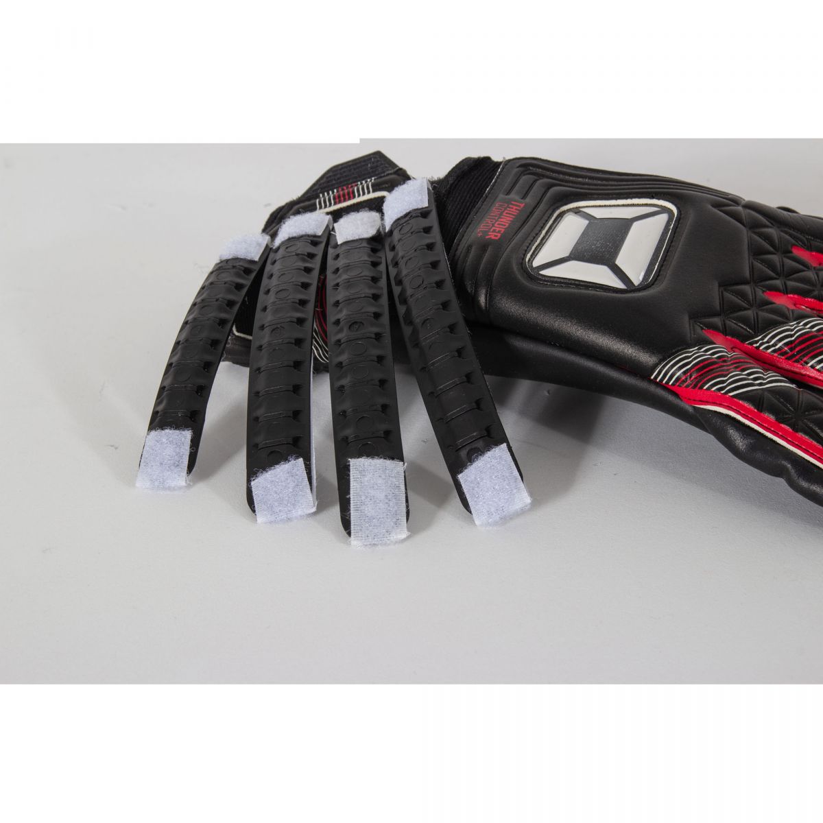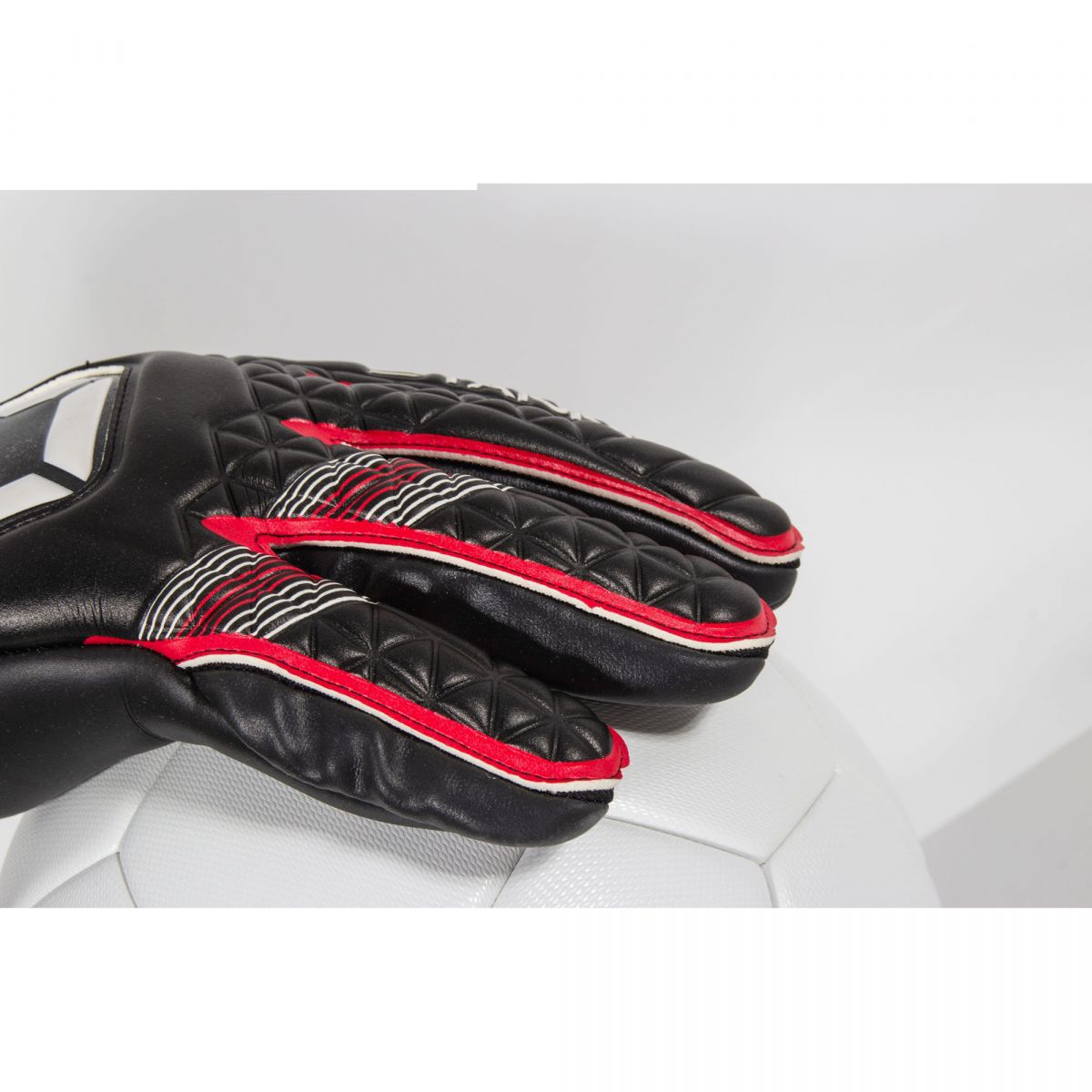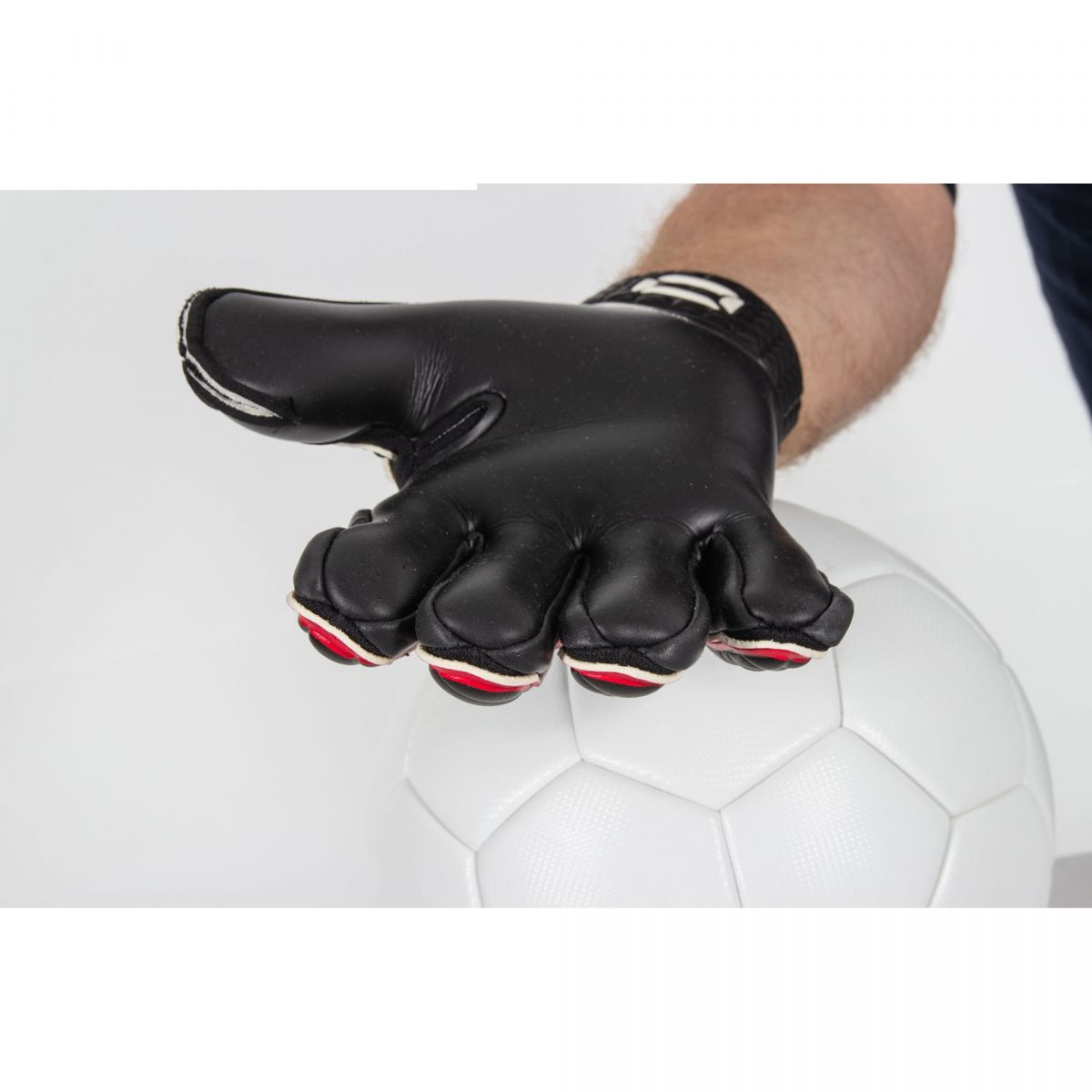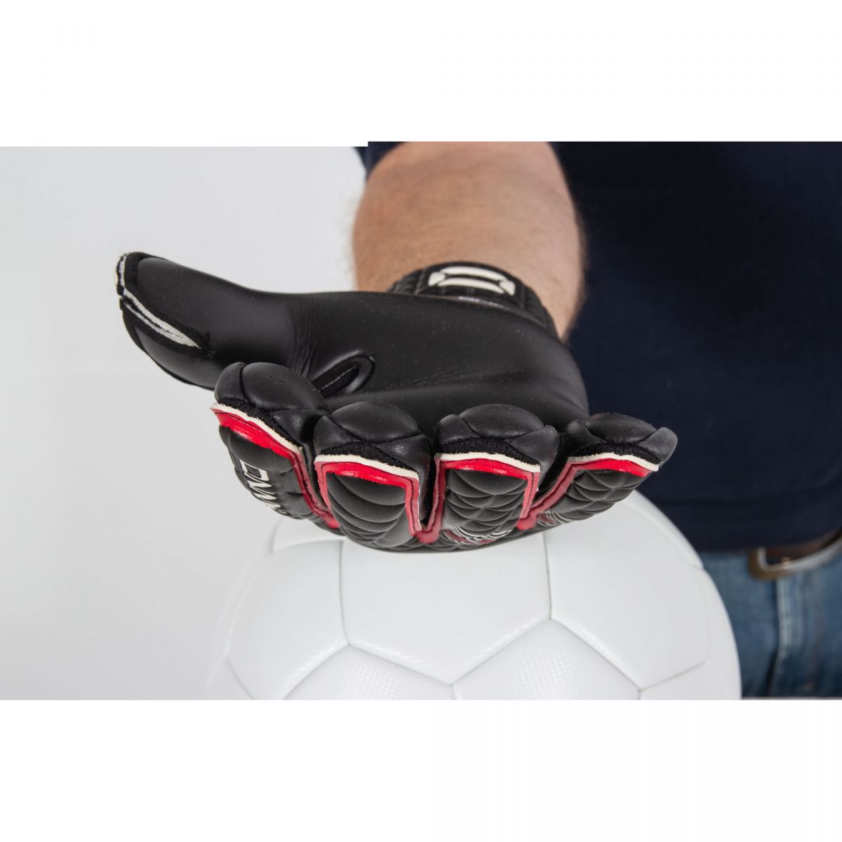 Der Stanno Thunder V mit Super Soft Profi-Schaum ist ein professioneller Handschuh für allerbeste Torwartleistung unter allen Witterungsbedingungen. Der Handschuh bietet Flexibilität beim Fangen, Fausten und Abwerfen. Der üppige Silikonaufdruck verleiht einen exklusiven Look und der Neopreneinsatz an der Oberseite sorgt für eine perfekte und flexible Passform. Mit Fingerschutz: Flexible, harte Stäbchen gewährleisten einen optimalen Schutz der Finger. Die Versteifungen können durch einen kleinen Reißverschluss an der Oberseite des Handschuhs entfernt werden. Der Handschuh hat eine flach gearbeitete Hand und ist im Spiegelbild genäht: Die Nähte verlaufen an der Innenseite der Finger, wodurch der Handschuh die Finger fest umschließt. Das sorgt für größere Ballkontrolle des Torwarts. Das gewebte Bündchen (mit einer Freifläche für den Namensaufdruck) sorgt für zusätzliche Stabilität.
