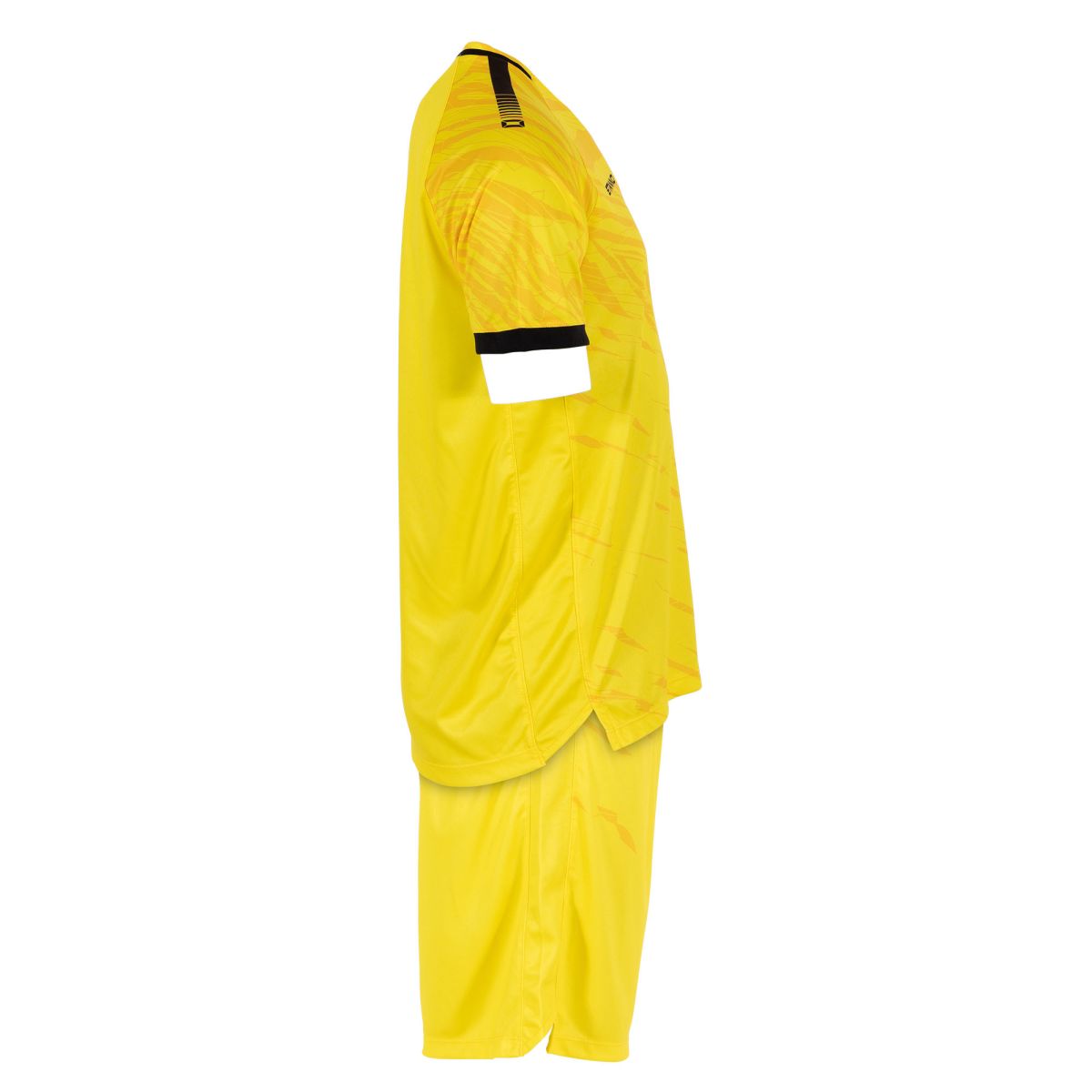 Das Trick Torwart Set verfügt über einen sublimierten Print und wird aus 100% recyceltem Polyester hergestellt. Die Shorts enthalten einen Kordelzug, der diese an Ort und Stelle hält. Stanno-Logos sind auf den Schultern und der rechten Brust aufgedruckt. Das Trikot hat einen längeren Rücken und seitliche Schlitze, die für optimale Bewegungsfreiheit sorgen.Veredelung: Bestickung, Bedruckung, BeflockungFarbe: Gelb