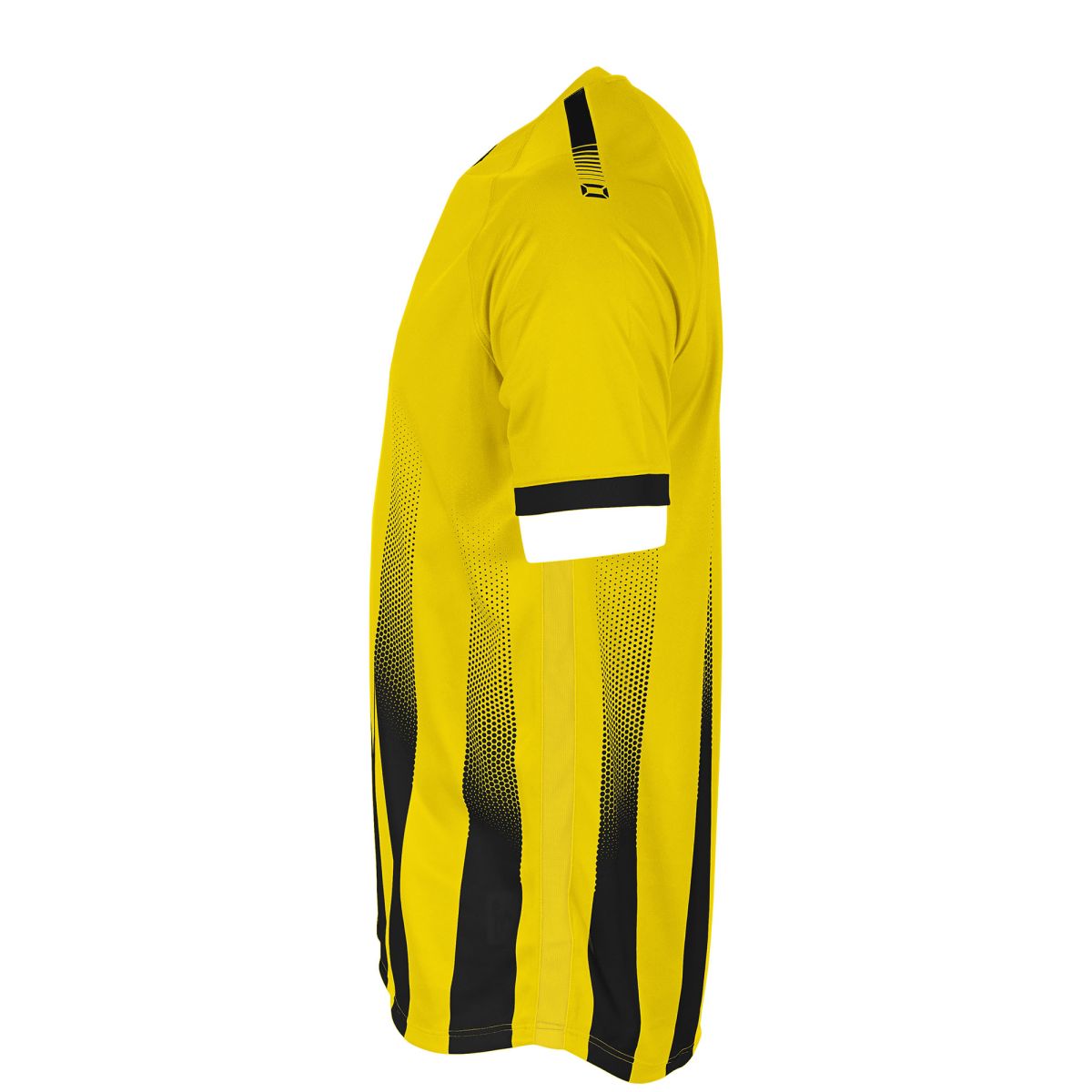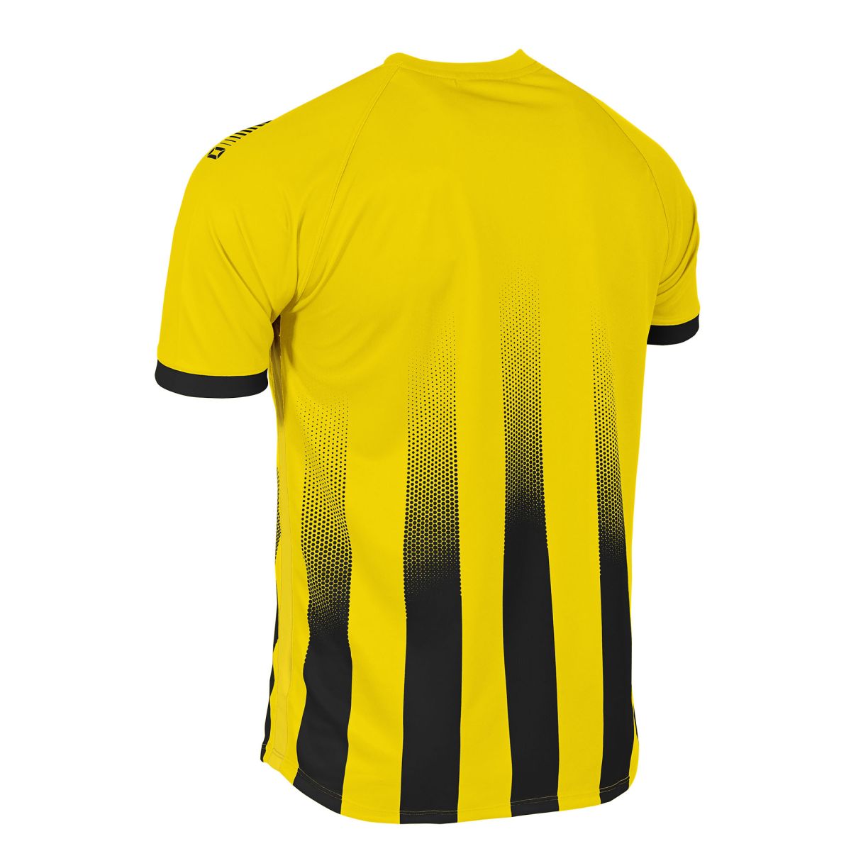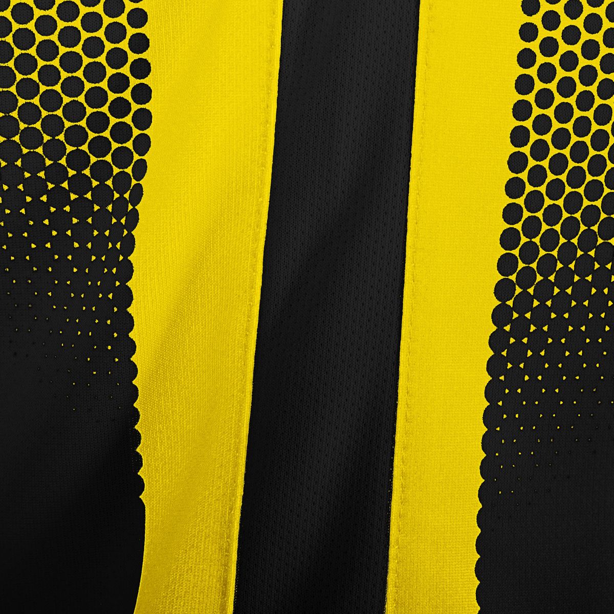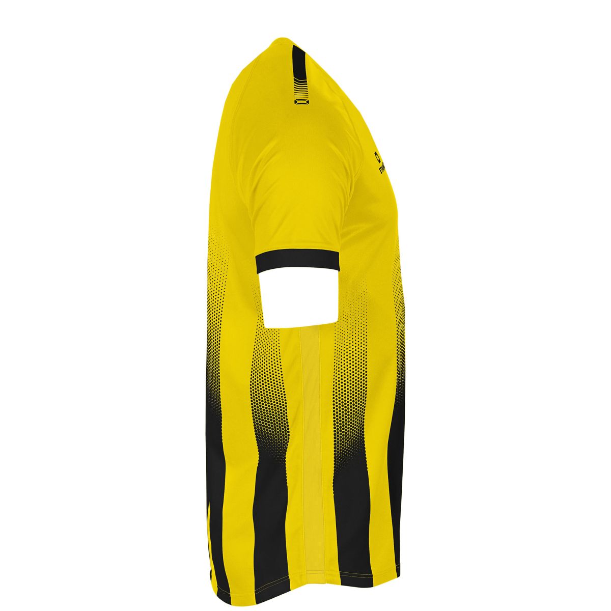 Das Stanno Vivid Trikot besteht aus 100% recyceltem Polyester mit ClimaTec-Finish und verfügt über ein sublimiertes Muster mit vertikalen Streifen. Das Trikot verfügt über Stanno-Logos und eine Mesh-Struktur, die für einen optimalen Feuchtigkeitstransport sorgt. Das Trikot hat zudem doppelte Nähte, die es extra widerstandsfähig machen.