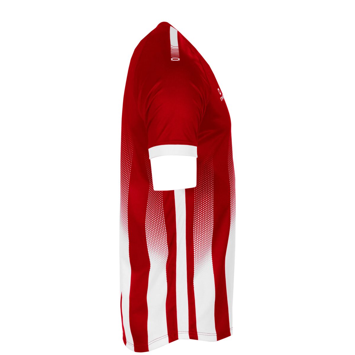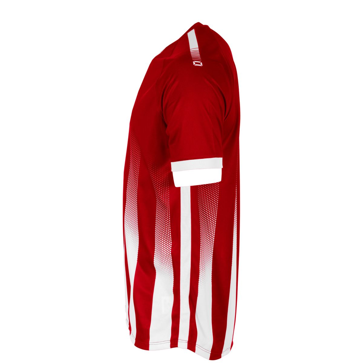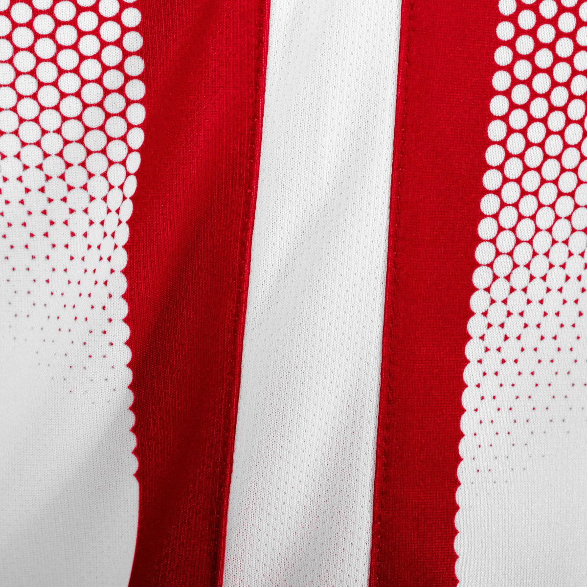 Das Stanno Vivid Trikot besteht aus 100% recyceltem Polyester mit ClimaTec-Finish und verfügt über ein sublimiertes Muster mit vertikalen Streifen. Das Trikot verfügt über Stanno-Logos und eine Mesh-Struktur, die für einen optimalen Feuchtigkeitstransport sorgt. Das Trikot hat zudem doppelte Nähte, die es extra widerstandsfähig machen.