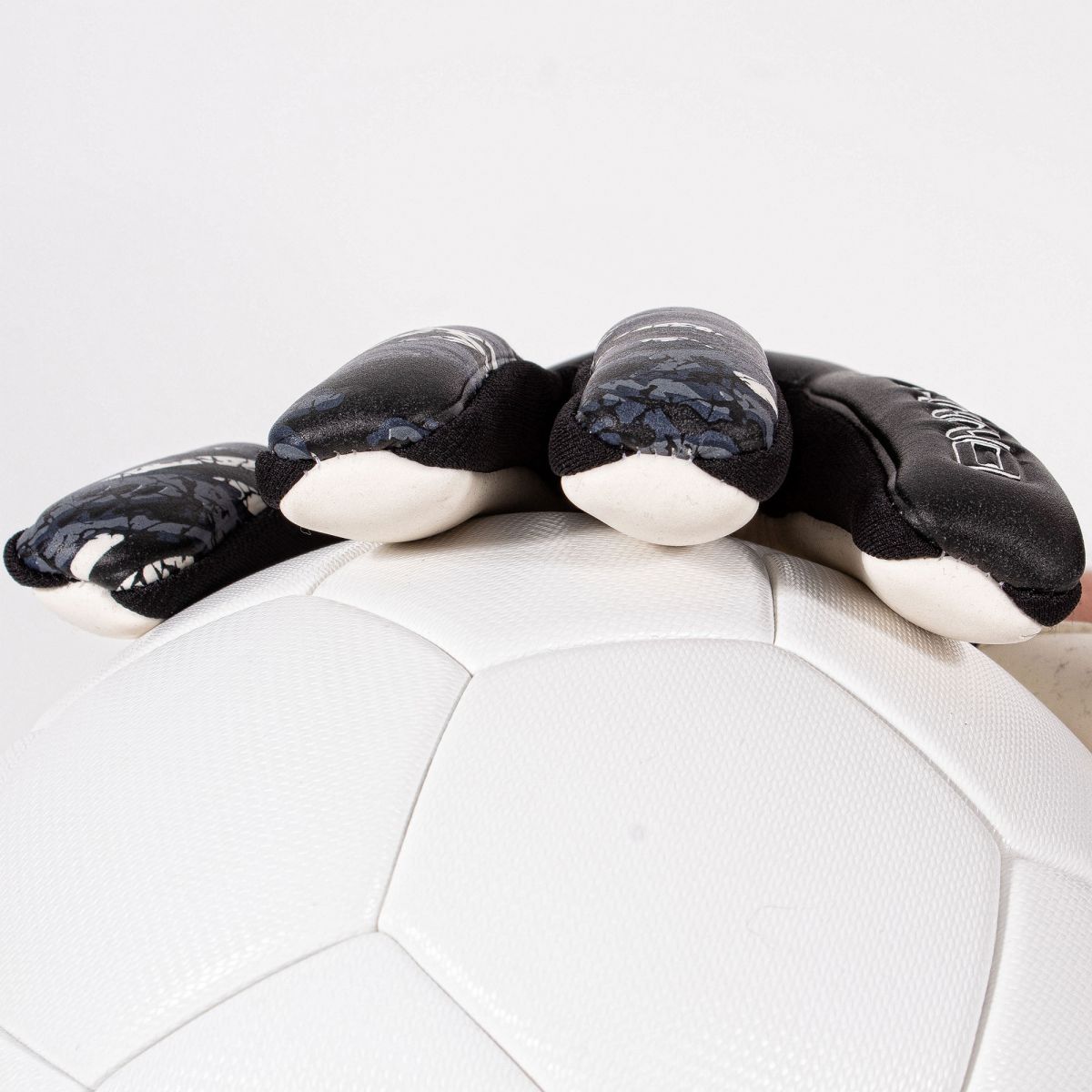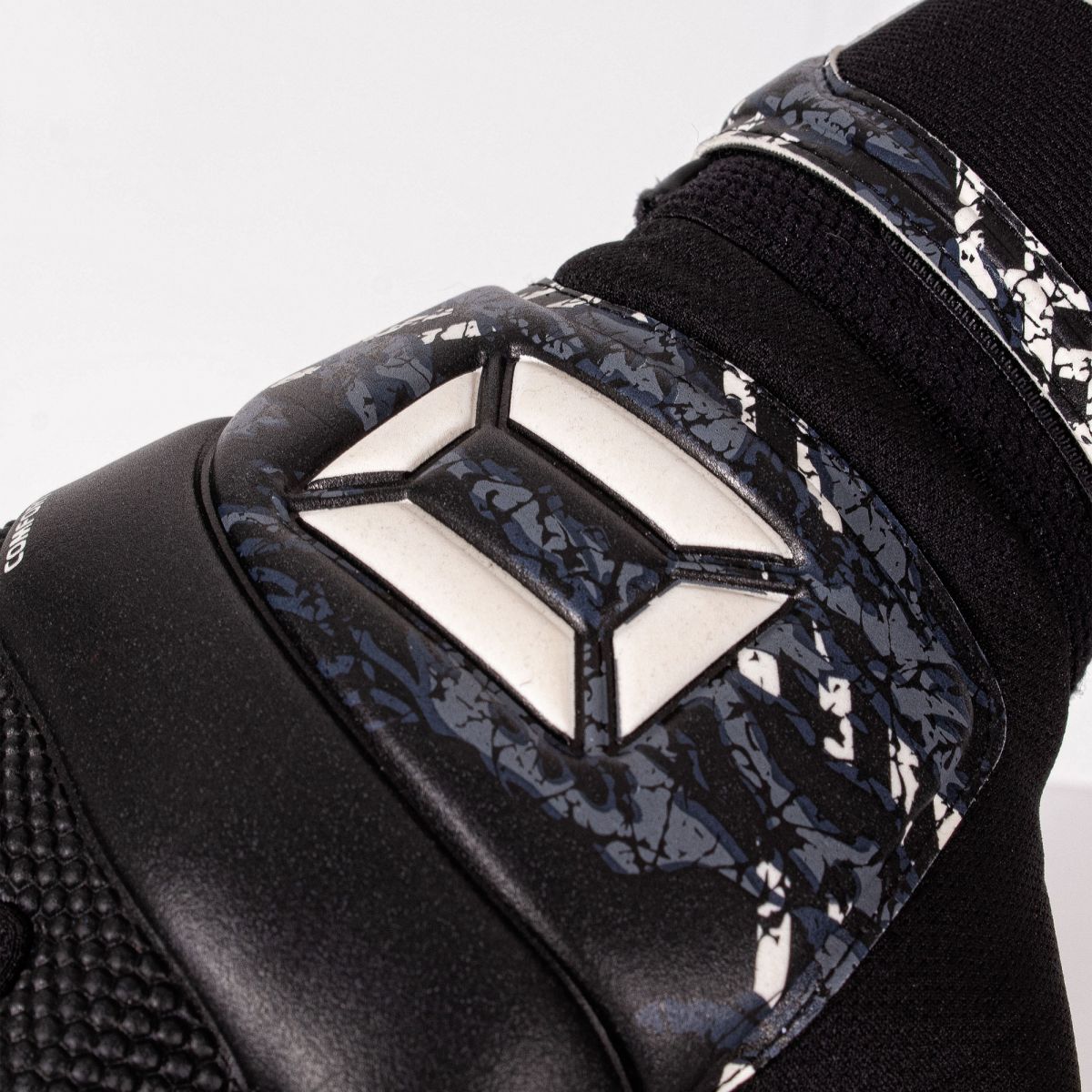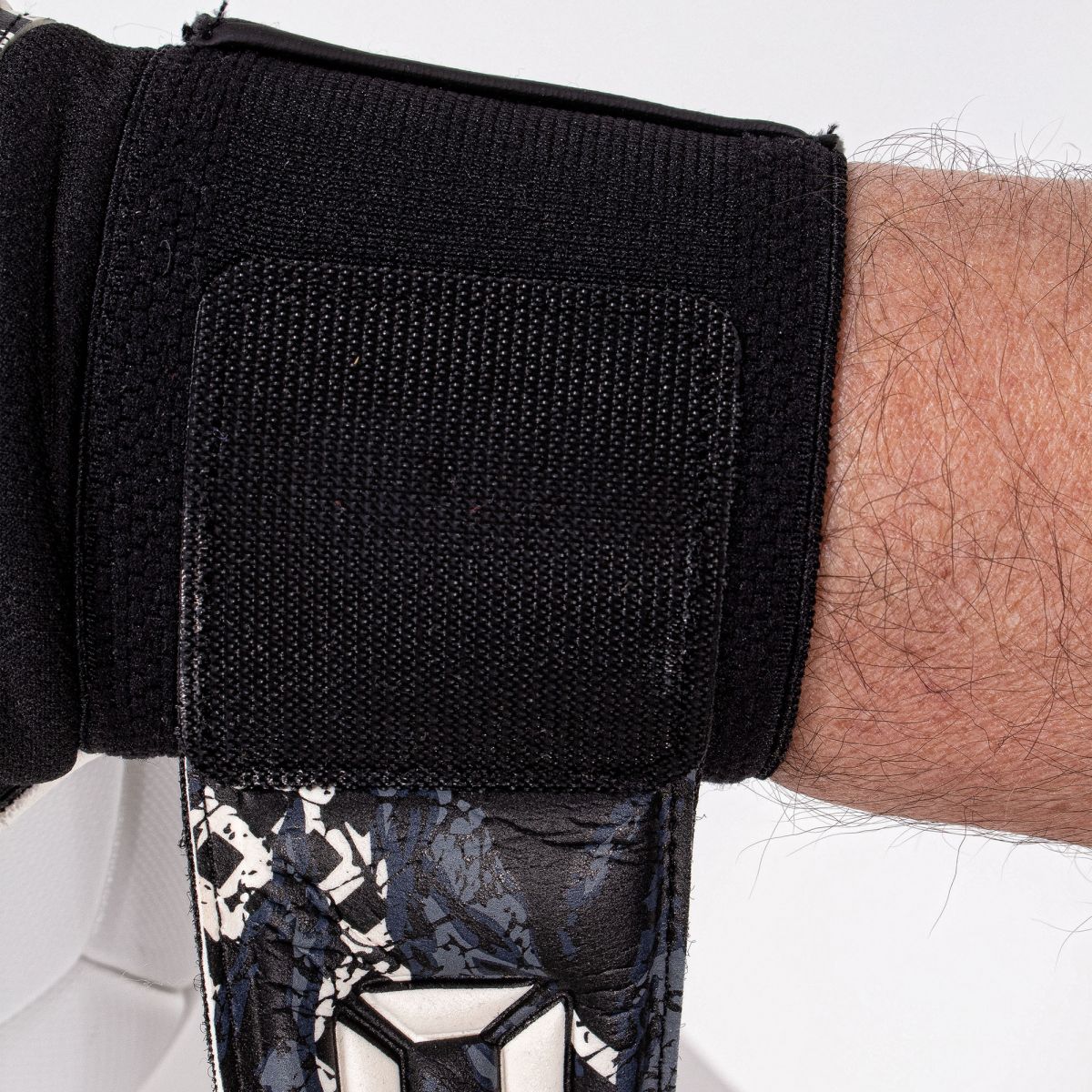 Dieser Handschuh enthält einen weichen Schaumstoff für zuverlässigen Halt und bequeme Dämpfung. Die flache, negative Nähte liegt eng an den Fingern und erhöht die Ballkontrolle. Der Neopreneinsatz im Obermaterial sorgt für eine perfekte und flexible Passform. An den Fingern hat der Handschuh eine elastische Einlage aus Mesh / Nylon. Der elastische Verschluss schützt das Handgelenk und das Armband bietet zusätzliche Stärke (mit Druckfläche für Ihren Namen).Veredelung: Bestickung, Bedruckung, BeflockungFarbe: Schwarz-Weiß