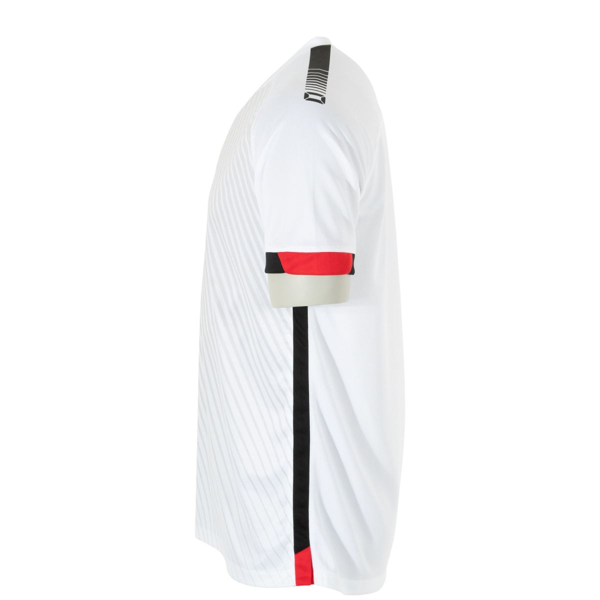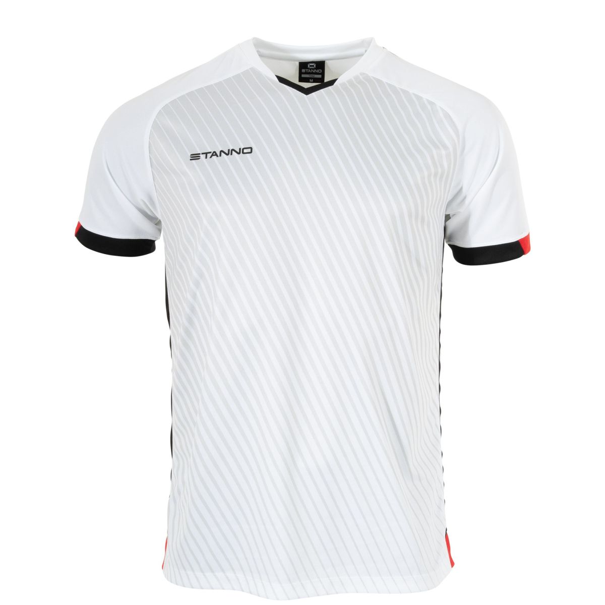 Dieses Shirt von Stanno besteht aus 100% Polyester und ist sowohl für Junioren als auch für Senioren erhältlich. Das Shirt hat einen V-Ausschnitt und eine sublimierte Frontpartie und besteht komplett aus belüftendem Mini-Mesh. Dieses Mini-Mesh sorgt für ein angenehmes Tragegefühl und ausreichende Belüftung beim Fußballspiel, anderen Mannschaftssportarten oder beim Individualsport. Das ClimaTec-Finish sorgt für eine optimale Schweißableitung. Ein weiterer Vorteil dieses Shirts ist, dass es sich leicht und geschmeidig anfühlt. Der Raglanärmeleinsatz sorgt zudem für ausreichend Bewegungsfreiheit. Die aufgedruckten Logos vervollständigen dieses Shirt.
