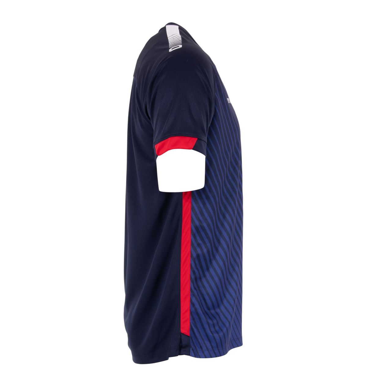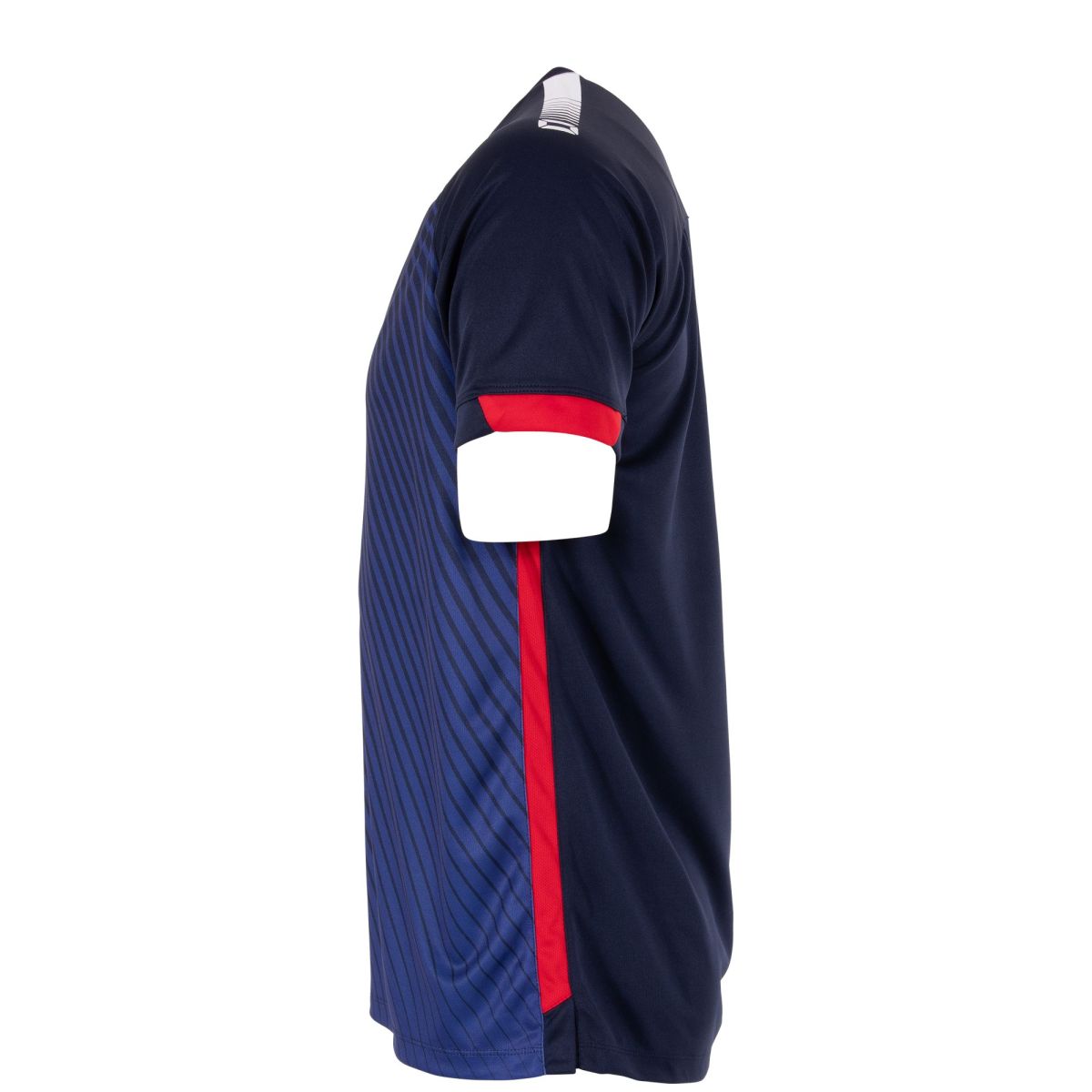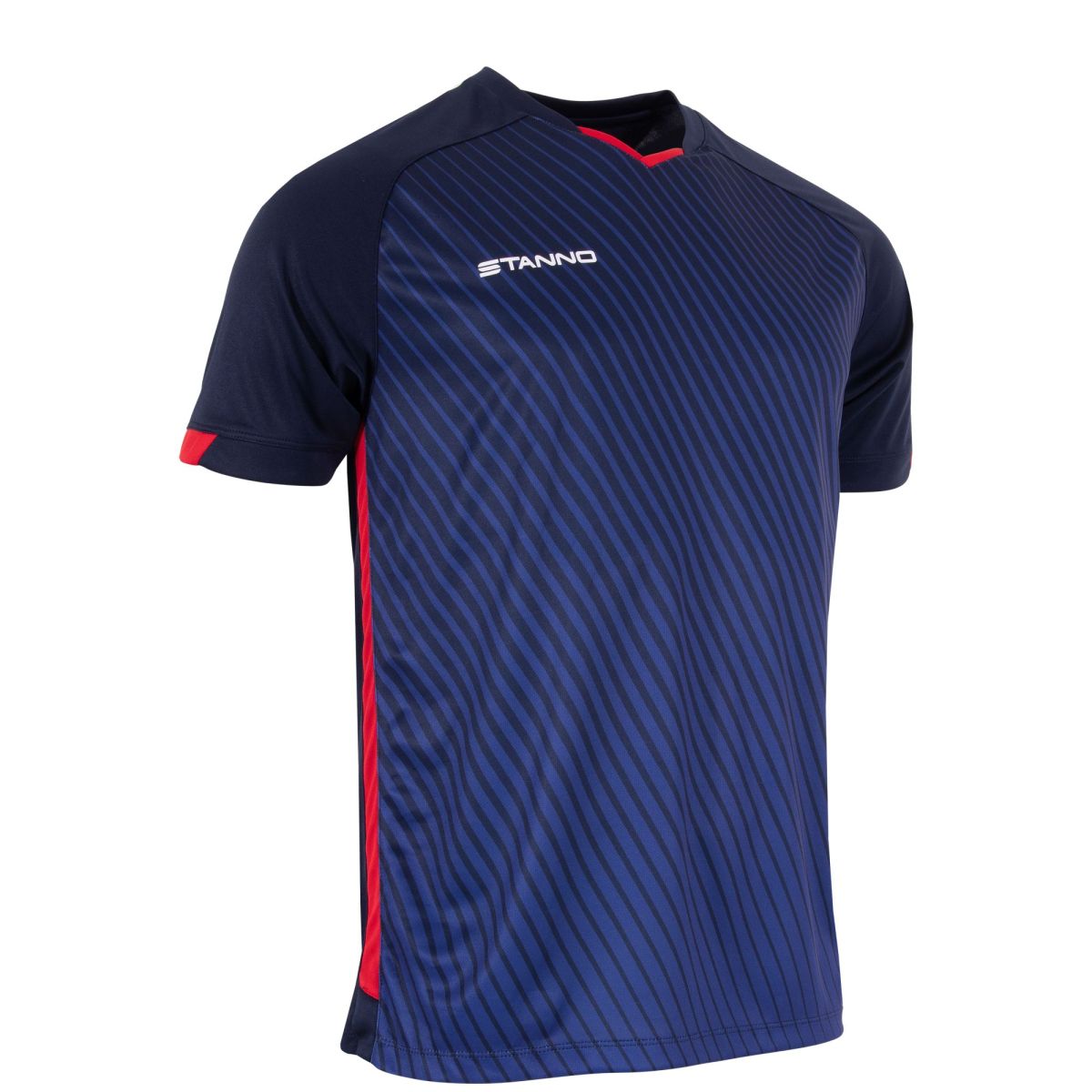 Dieses Shirt von Stanno besteht aus 100% Polyester und ist sowohl für Junioren als auch für Senioren erhältlich. Das Shirt hat einen V-Ausschnitt und eine sublimierte Frontpartie und besteht komplett aus belüftendem Mini-Mesh. Dieses Mini-Mesh sorgt für ein angenehmes Tragegefühl und ausreichende Belüftung beim Fußballspiel, anderen Mannschaftssportarten oder beim Individualsport. Das ClimaTec-Finish sorgt für eine optimale Schweißableitung. Ein weiterer Vorteil dieses Shirts ist, dass es sich leicht und geschmeidig anfühlt. Der Raglanärmeleinsatz sorgt zudem für ausreichend Bewegungsfreiheit. Die aufgedruckten Logos vervollständigen dieses Shirt.