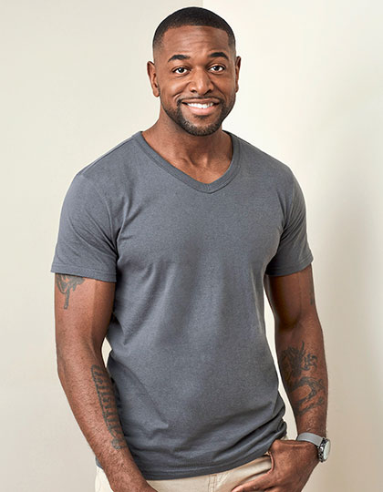 Gekämmte, ringgesponnene BaumwolleWeiches HandgefühlSchlanke, modische PassformSchmaler V-Ausschnitt mit 1x1 RippEigenmaterial-NackenbandNeues Abreißetikett am NackenMaterial: 100% Baumwolle (Heather Grey: 97% Baumwolle, 3% Polyester)Grammatur: 150 g/m² (White: 140 g/m²)Gewicht: 0.115Hergestellt nach: Faire Arbeitsbedingungen, Oeko-Tex 100Veredelung: Bestickung, Bedruckung, Beflockung