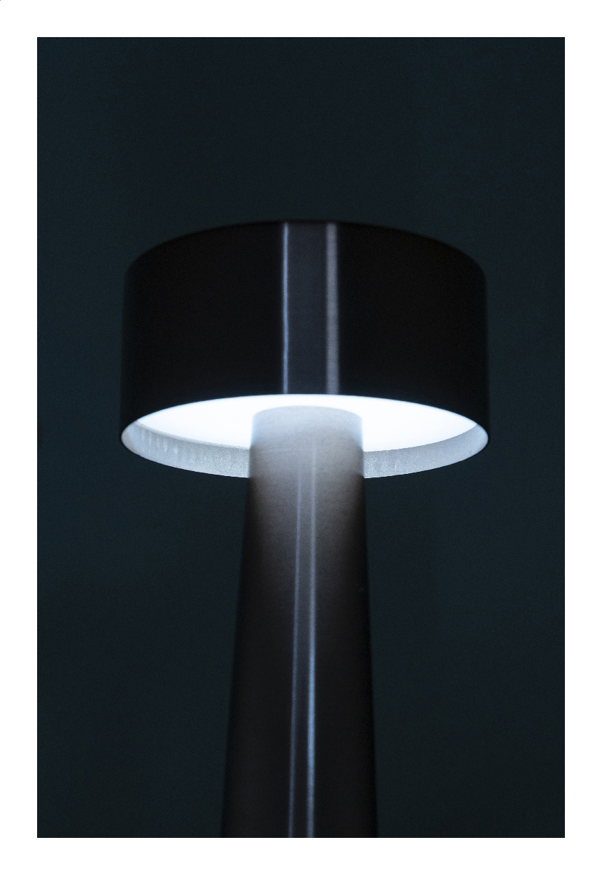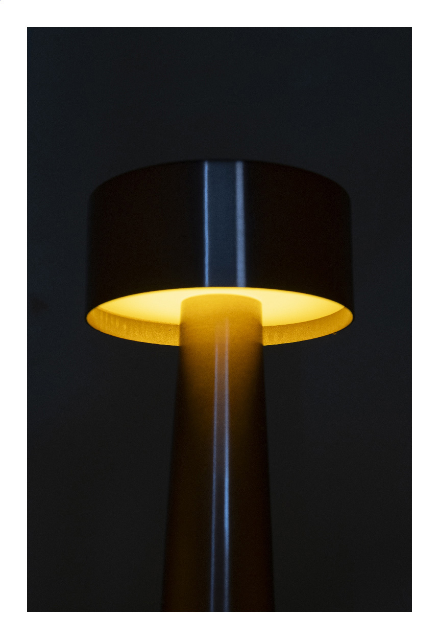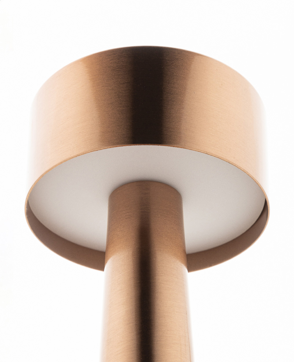 Stehtischlampe aus Metall in Goldoptik mit 24 LEDs, einstellbarer Helligkeit und wiederaufladbarem 800 mAh USB-Akku. Mit Modi für warmes, natürliches und kaltes Licht. Inklusive USB-Ladekabel.