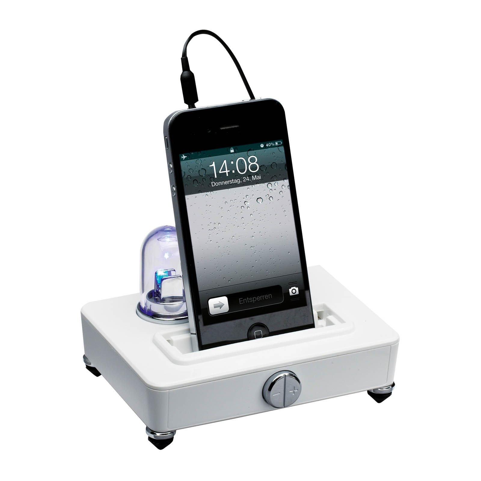 * Stromanschluss über USB-Kabel (im Lieferumfang enthalten), optional über Batterie (nicht im Lieferumfang enthalten)* Anschluss der externen Geräte über Klinkenstecker (3,5 mm, im Lieferumfang enthalten)* Externe Geräte werden auf der drehbaren Halterung per Haftpad gehaltenKunststoff, weiß, CEFarbe: weißGewicht: 277 gFormat in mm: 125 (L) x 100 (B) x 74 (H)Veredelungsvarianten: Tampondruck (1c), Tampondruck (2c)Druckfläche: 70 x 20 mmHandling: BMaterial: KunststoffFarbe: Weiß