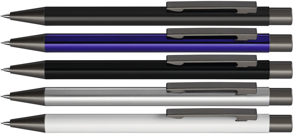 Metall-Druckbleistift (0,7mm) mit glänzendem Gehäuse. Metallclip, Metallspitze und Drücker GUN metallic. Radiergummi im Drücker.Druckbereich: Auf dem Clip 34mm x 3,5mm Lasergravur (L), in Clipverlängerung 35mm x 6mm Lasergravur (L), in Clipverlängerung 35mm x 20mm Siebdruck (MS), gegenüber vom Clip 70mm x 6mm Lasergravur (L), gegenüber vom Clip 70mm x 13mm Siebdruck (MS), seitlich vom Clip 70mm x 6mm Lasergravur (L), seitlich vom Clip 70mm x 13mm Siebdruck (MS), Druckfläche 85mm x 30mm Rundumlasergravur (RL), auf dem Clip 34mm x 3,5mm Einzelnamensgravur (EL), in Clipverlängerung 35mm x 6mm Einzelnamensgravur (EL), gegenüber vom Clip 70mm x 6mm Einzelnamensgravur (EL), seitlich vom Clip 70mm x 6mm Einzelnamensgravur (EL)Oberfläche: MetallGewicht: 16,58 gMaterial: Metall