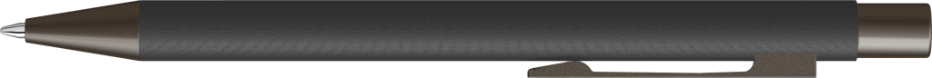 Druckkugelschreiber mit gedeckt mattem Gehäuse und Bogenclipdrücker.Druckbereich: Auf dem Clip 30mm x 7mm Tampondruck (T), in Clipverlängerung 50mm x 20mm Siebdruck (S), gegenüber vom Clip 50mm x 20mm Siebdruck (S), seitlich vom Clip 50mm x 20mm Siebdruck (S)