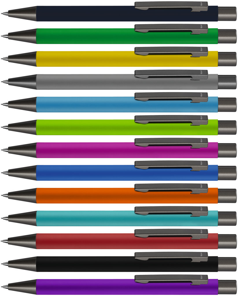 Metall-Druckbleistift (0,7mm) mit Softtouch-Gehäuse. Metallclip, Metallspitze und Drücker GUN metallic. Radiergummi im Drücker.Druckbereich: Auf dem Clip 34mm x 3,5mm Lasergravur (L), in Clipverlängerung 35mm x 6mm Lasergravur (L), gegenüber vom Clip 70mm x 6mm Lasergravur (L), seitlich vom Clip 70mm x 6mm Lasergravur (L), Druckfläche 85mm x 30mm Rundumlasergravur (RL), in Clipverlängerung 35mm x 6mm Siebdruck (GS), gegenüber vom Clip 70mm x 6mm Siebdruck (GS), seitlich vom Clip 70mm x 6mm Siebdruck (GS), auf dem Clip 34mm x 3,5mm Einzelnamensgravur (EL), in Clipverlängerung 35mm x 6mm Einzelnamensgravur (EL), gegenüber vom Clip 70mm x 6mm Einzelnamensgravur (EL), seitlich vom Clip 70mm x 6mm Einzelnamensgravur (EL)Oberfläche: GUMGewicht: 17,508 gMaterial: Metall