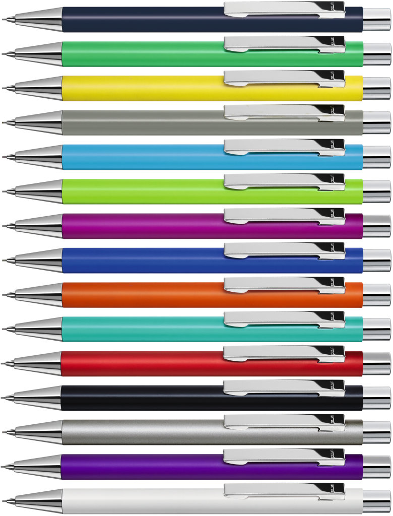 Metall-Druckbleistift (0,7mm) mit Softtouch-Gehäuse. Metallclip, Metallspitze und Drücker GUN metallic. Radiergummi im Drücker.Druckbereich: Auf dem Clip 34mm x 3,5mm Lasergravur (L), in Clipverlängerung 35mm x 6mm Lasergravur (L), gegenüber vom Clip 70mm x 6mm Lasergravur (L), seitlich vom Clip 70mm x 6mm Lasergravur (L), Druckfläche 85mm x 30mm Rundumlasergravur (RL), in Clipverlängerung 35mm x 6mm Siebdruck (GS), gegenüber vom Clip 70mm x 6mm Siebdruck (GS), seitlich vom Clip 70mm x 6mm Siebdruck (GS), auf dem Clip 34mm x 3,5mm Einzelnamensgravur (EL), in Clipverlängerung 35mm x 6mm Einzelnamensgravur (EL), gegenüber vom Clip 70mm x 6mm Einzelnamensgravur (EL), seitlich vom Clip 70mm x 6mm Einzelnamensgravur (EL)Oberfläche: GUMGewicht: 17,508 gMaterial: Metall
