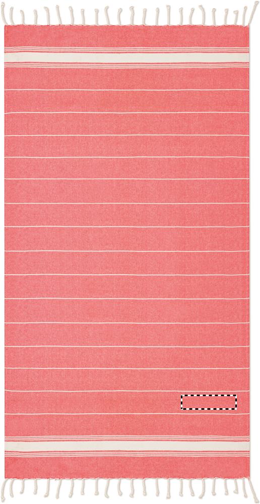 Strandtuch/Hamamtuch aus 180 g/m² Baumwolle.Material: BaumwolleMaße: 90x170 cmGewicht: 0.294 kgVeredelung: Bestickung, Bedruckung, BeflockungHandling/Farbcodes: D/04, 05, 10, 12, 07Druckposition: TOWEL CORNERDruckmaße: 200 x 50 mmDrucktechniken: TR, E, S3, T1, TD1Druckposition: TOWEL CENTERDruckmaße: 400 x 250 mmDrucktechniken: T1, TD1, TRDruckposition: TOWEL CENTER BACKDruckmaße: 400 x 250 mmDrucktechniken: TR, T1, TD1Druckposition: TOWEL CENTER EDruckmaße: 230 x 230 mmDrucktechniken: E