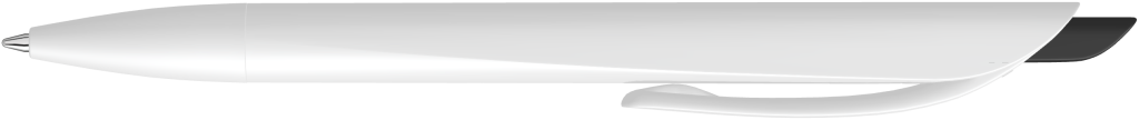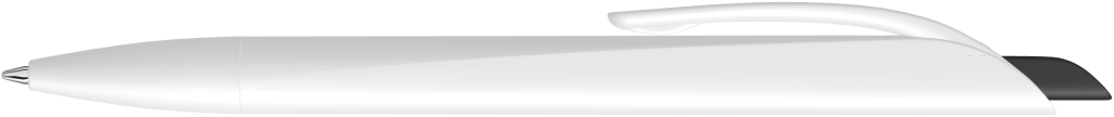 Druckkugelschreiber mit geometrisch wechselnder Schaftform. Gehäuse gedeckt matt schwarz oder weiß mit Bogenclip und farbigem Drücker.Druckbereich: In Clipverlängerung 30mm x 8mm Tampondruck (T), gegenüber vom Clip 75mm x 6mm Tampondruck (T), seitlich vom Clip 40mm x 4mm Tampondruck (T), auf dem Clip 40mm x 7mm Tampondruck (T)