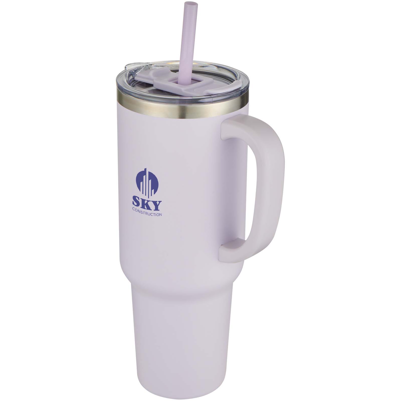 Sydney 1200 ml doppelwandiger RCS-zertifizierter Kupfer-Vakuum Isolierbecher mit Strohhalm Fliederfarben