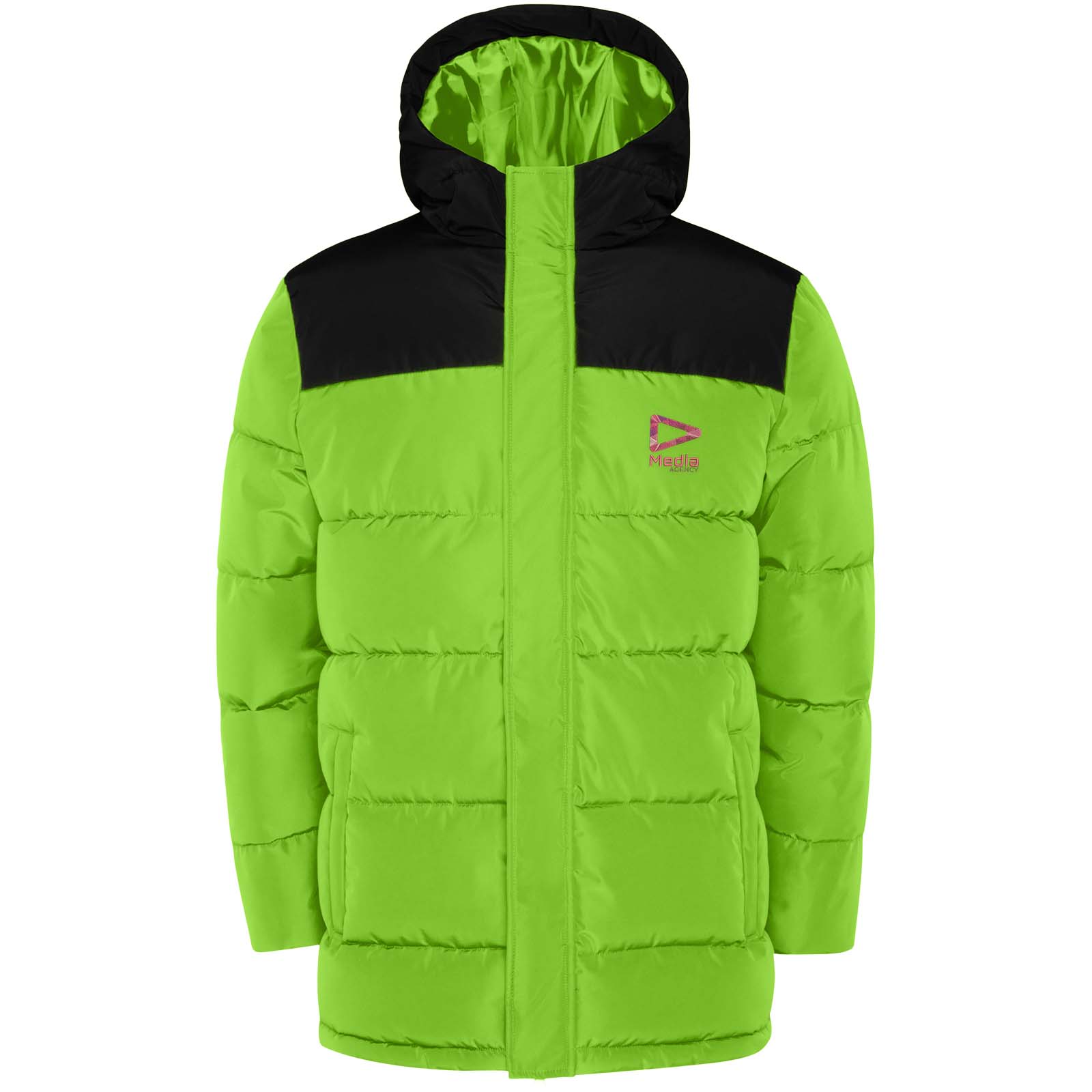 Wattierte Jacke mit fester Kapuze. Reißverschluss auf der Vorderseite, verdeckt durch eine Knopfleiste. Kinnschutz. Zwei Seitentaschen mit Reißverschluss. Elastische Bündchen.Besonderheiten:- Geschlecht: Kinder- OEKO-TEX®- SMETAMaterial: Taft 100% Polyester, Lining, 100% Polyester, Padding/filling, 100% PolyesterStandard-Druck---------------Druckart: Stick fixDruckposition: linke BrustDruckgröße: 57 x 57 mm mm (BxH)Druckfarben maximal: 5Zusätzliche Informationen: Schauen Sie bitte vor der Bestellung in die Roly Größentabelle. Roly folgt den spanischen Größen, die eine eher slim-fit Passform haben.Suchwörter: roly, Jacke, Jacken, Thermojacke, Winterjacke