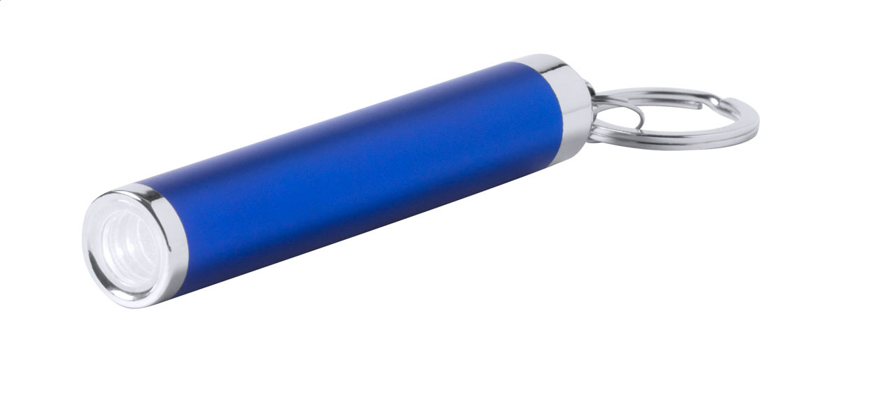 Mini-Taschenlampe mit 1 LED, Kunststoffgehäuse mit Metall-Schlüsselring. Das gravierte Logo aur dem Korpus wird beleuchtet. Inkl. Batterien (Knopfzellen).