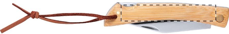 Klappbares Messer aus 2CR13 Edelstahl. Griffteil aus Bambus und Handschlaufe aus PU. Bambus ist ein natürliches Produkt, es kann daher zu leichten Abweichungen in Farbe, Dekor und Maßen kommen.Material: Edelstahl Maße: 9,7x2,5x1,1cmGewicht: 0.043 kgFarbe: HolzVeredelung: Bestickung, Bedruckung, BeflockungHandling/Farbcodes: B/40Druckposition: RIGHT HANDEDDruckmaße: 60 x 6 mmDrucktechniken: DL, DO1, L3, P5Druckposition: LEFT HANDEDDruckmaße: 60 x 6 mmDrucktechniken: L3, DL, DO1, P5