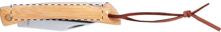 Taschenmesser aus Edelstahl mit Bambusgriff und Band aus Kunstleder. Mit Sicherheitsverschluss.