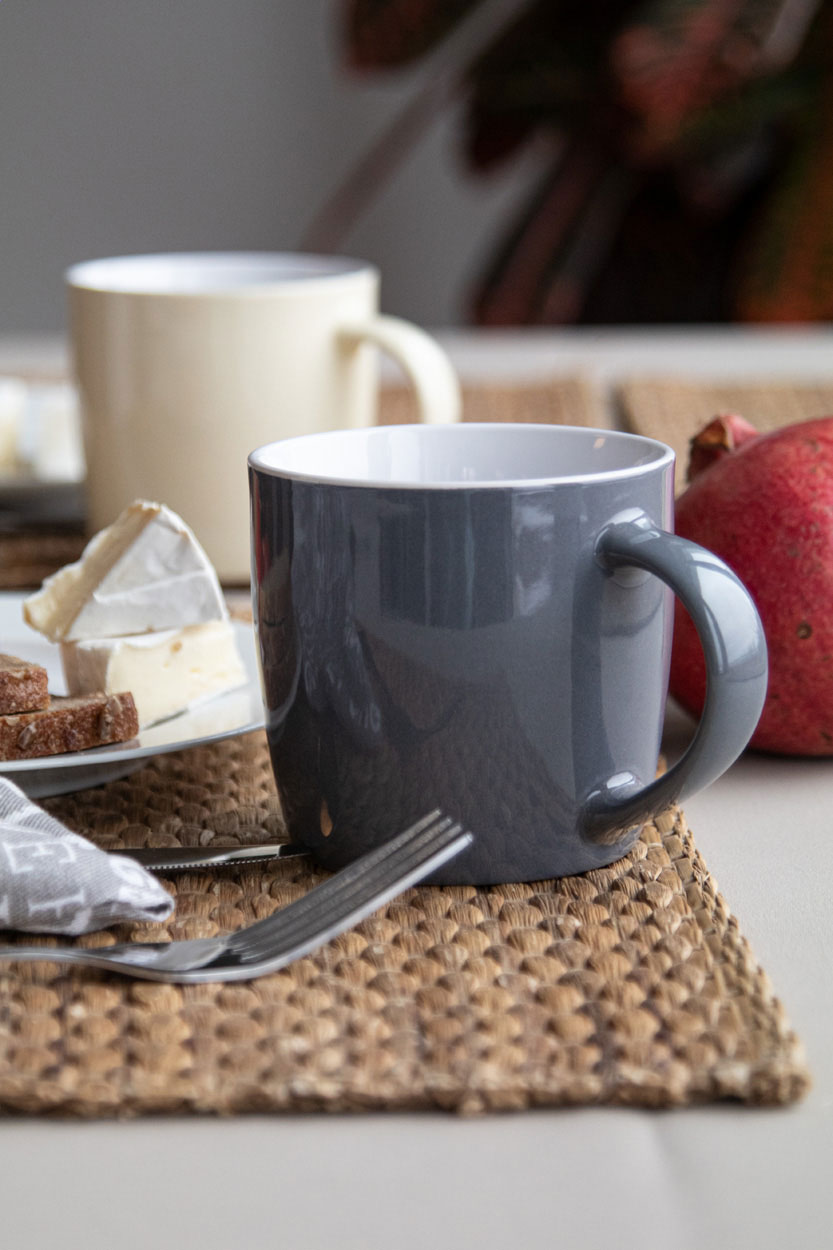 Hochwertige, farbige Keramiktasse mit weißer Innenseite. Einzeln in Kraftpapierbox. Füllmenge: 370 ml.