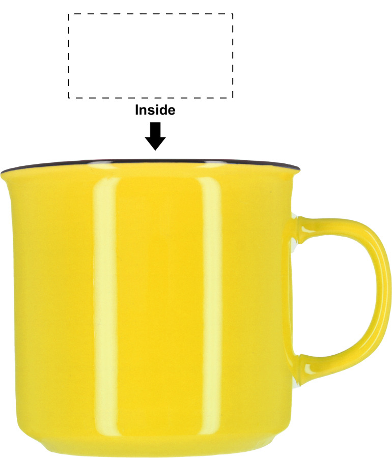Vintage-Keramiktasse, innen weiss / außen farbig. Füllmenge: 300 ml. Einzeln in Geschenkbox.Maße: ø88×80 mmFüllmenge: 300 mlSpülmaschinengeeignet: JaMikrowellenfest: JaWandtyp: EinwandigMaterial: KeramikVeredelungsposition 1: RundumTechnologie: KeramikdruckMaximale Farben: 8Durchmesser: 0Druckcode: C3Veredelungsposition 2: Für RechtshänderTechnologie: KeramikdruckMaximale Farben: 8Durchmesser: 0Druckcode: C1Technologie: TampondruckMaximale Farben: 2Durchmesser: 0Druckcode: P3Veredelungsposition 3: Für LinkshänderTechnologie: KeramikdruckMaximale Farben: 8Durchmesser: 0Druckcode: C1Technologie: TampondruckMaximale Farben: 2Durchmesser: 0Druckcode: P3Veredelungsposition 4: Gegenüber vom HenkelTechnologie: KeramikdruckMaximale Farben: 8Durchmesser: 0Druckcode: C1Veredelungsposition 5: Innen - für RechtshänderTechnologie: KeramikdruckMaximale Farben: 8Durchmesser: 0Druckcode: C3Veredelungsposition 6: Innen - für LinkshänderTechnologie: KeramikdruckMaximale Farben: 8Durchmesser: 0Druckcode: C3Veredelungsposition 7: Rotationssiebdruck auf der dem Henkel gegenüberliegenden SeiteTechnologie: Rundum-SiebdruckMaximale Farben: 1Durchmesser: 0Druckcode: RS3