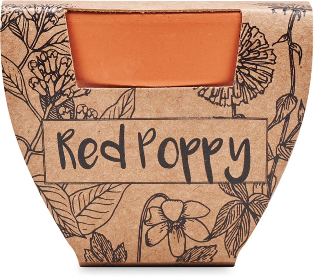 Kleiner Terrakotta-Topf mit ''Mohnblumen''-Samen. Hergestellt in der EU. Inkl. Bodengrund-Scheiben.