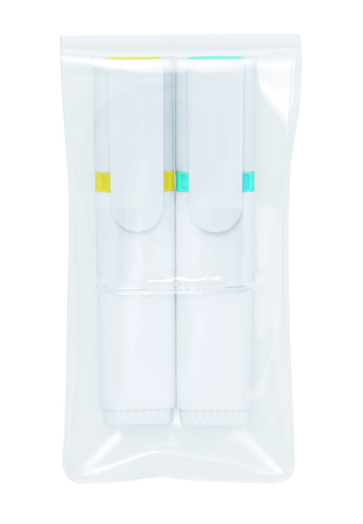 Textmarker 2er-Set aus den Standardfarben in transparentem Stecketui.