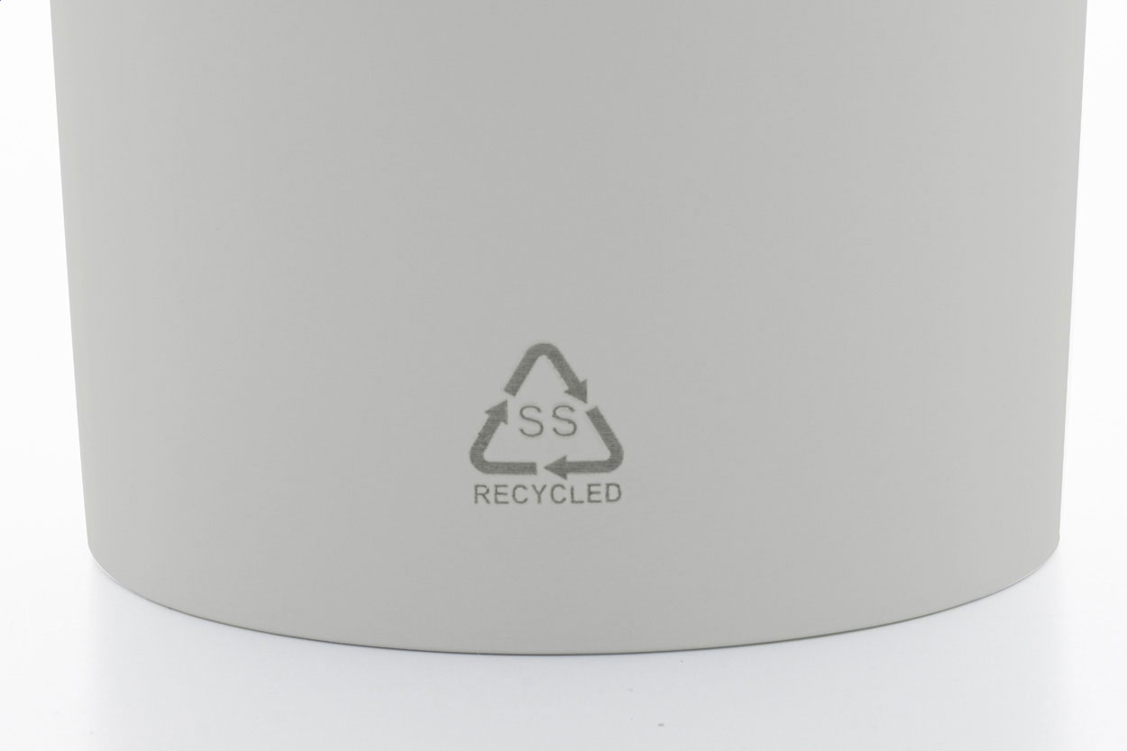 Material: Recycelter Edelstahl, Kunststoff (PS)