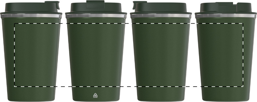 Die Welt sieht mit einem Kaffee in der Hand gleich viel besser aus. Ganz besonders mit diesem Kaffeebecher. Dank unseres neuen Mehrwegbechers ist Schluss mit der unnötigen Müllproduktion. Er ist die wiederverwendbare Alternative zum Einwegmüll! Zu 100% recycelbar und natürlich BPA-frei. Für die (Industrie-)Spülmaschine geeignet. Perfekt für den privaten Bereich und die Gastronomie.Material: KunststoffMaße: 0 x 0 x 253 x Ø: 79,00 mmGewicht: 33 gDruckmöglichkeitenPosition 1: MittigDruckart: SiebdruckDruckgruppe: DCMaximale Farben: 5Breite: 180 mmHöhe: 60 mmPosition 2: HochkantDruckart: TampondruckDruckgruppe: TAMCMaximale Farben: 5Breite: 15 mmHöhe: 70 mmPosition 3: MittigDruckart: TampondruckDruckgruppe: TAMCMaximale Farben: 5Durchmesser: 25 mmPosition 4: MittigDruckart: LasergravurDruckgruppe: L1Maximale Farben: 1Breite: 30 mmHöhe: 70 mm