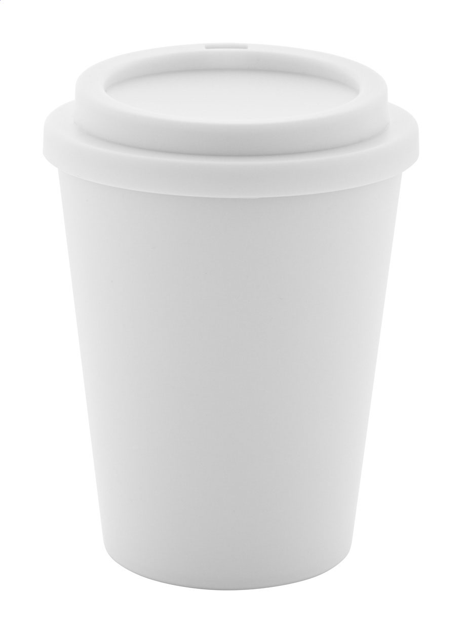 Doppelwandiger, isolierter Thermobecher aus PP-Kunststoff mit Trinkdeckel. Füllmenge: 300 ml.