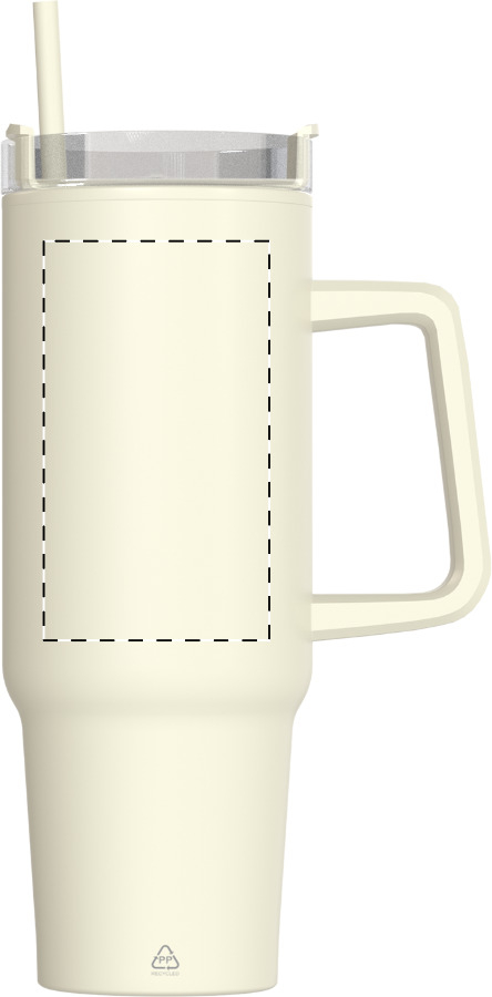 Doppelwandiger, isolierter Thermobecher aus PP-Kunststoff mit Trinkdeckel und Strohhalm. Füllmenge: 1100 ml.Maße: ø100×250 mmFüllmenge: 1100 mlSpülmaschinengeeignet: NeinMikrowellenfest: NeinWandtyp: DoppelwandigMaterial: Kunststoff (PP)Veredelungsposition 1: Für RechtshänderTechnologie: TampondruckMaximale Farben: 4Durchmesser: 0Druckcode: P3Veredelungsposition 2: Für LinkshänderTechnologie: TampondruckMaximale Farben: 4Durchmesser: 0Druckcode: P3Veredelungsposition 3: Rotationssiebdruck auf der dem Henkel gegenüberliegenden SeiteTechnologie: Rundum-SiebdruckMaximale Farben: 1Durchmesser: 0Druckcode: RS2