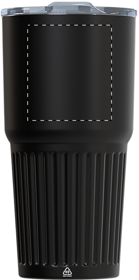 Doppelwandiger, isolierter Thermobecher aus recyceltem Edelstahl mit Trinkdeckel aus ABS-Kunststoff. Füllmenge: 600 ml.