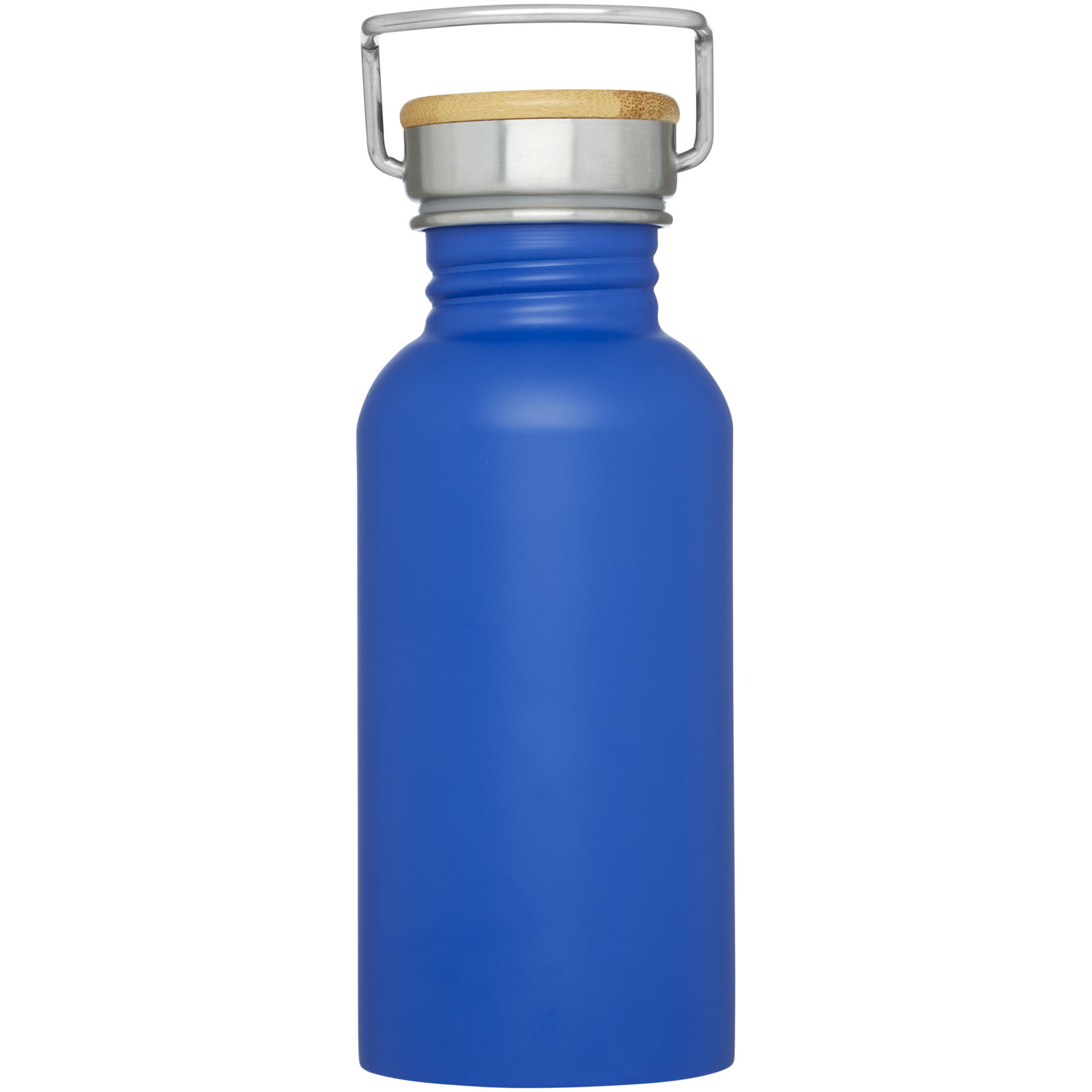 Einwandige Edelstahlflasche mit Schraubdeckel. Der Deckel verfügt über ein Bambusoberteil sowie einen Griff zum einfachen Tragen. Das Fassungsvermögen beträgt 550 ml. Verpackt in einer Avenue-Geschenkschachtel.
