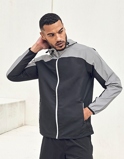 3-teilige Kapuze mit einstellbarem Kordelzug und KnebelknöpfenReflektierender Einsatz über Brust, Schultern und ÄrmelnWasserabweisendes und atmungsaktives GewebeStretch-Bündchen an ÄrmelnEinstellbarer Bund mit Knebelknöpfen und KordelzugZwei Reißverschluss-TaschenAlle Reißverschlüsse mit FeststellschiebernTombo-AbreißetikettMaterial: 100% PolyesterGrammatur: 110 g/m²Gewicht: 0.486Hergestellt nach: Faire ArbeitsbedingungenVeredelung: Bestickung, Bedruckung, BeflockungFarbe: Black/Reflective