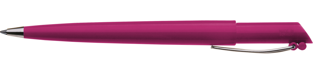 Druckkugelschreiber mit gedeckt glänzendem Gehäuse, vernickeltem Metallbiegeclip und Metallspitze. Designed in Deutschland, gefertigt in der Schweiz, zusammengefügt und veredelt im Schwarzwald.