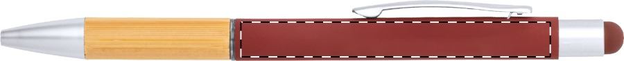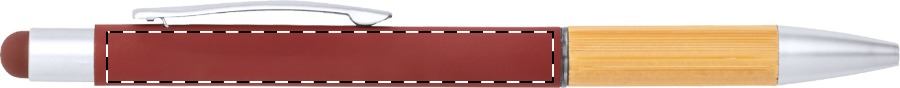 Kugelschreiber mit Touchpen aus Aluminium und Griff aus Bambus sowie mattem Finish, blauschreibend.Maße: ø10×145 mmSchreibgerät-Typ: KugelschreiberSchreibgerät-Mechanik: DruckmechanikSchreibfarbe: BlauTouchpen: JaLinienstärke: 1 mmMaterial: Aluminium, BambusVeredelungsposition 1: Rechts vom ClipTechnologie: GravurDurchmesser: 0Druckcode: E1Technologie: UV LED DruckDurchmesser: 0Druckcode: UVBVeredelungsposition 2: Links vom ClipTechnologie: GravurDurchmesser: 0Druckcode: E1Technologie: UV LED DruckDurchmesser: 0Druckcode: UVBVeredelungsposition 3: Korpus - rechts vom ClipTechnologie: GravurDurchmesser: 0Druckcode: E1Veredelungsposition 4: Korpus - links vom ClipTechnologie: GravurDurchmesser: 0Druckcode: E1Veredelungsposition 5: Gegenüber vom ClipTechnologie: GravurDurchmesser: 0Druckcode: E1