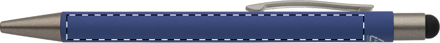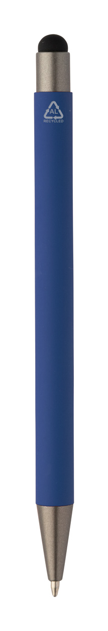 Kugelschreiber mit Touchpen aus recyceltem Aluminium mit Softtouch Oberfläche und Teilen in Gunmetal-Optik. Blauschreibend.