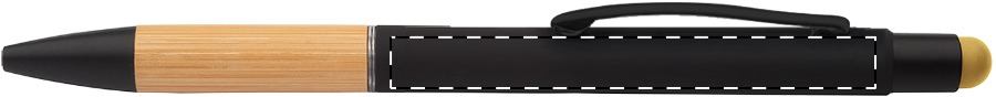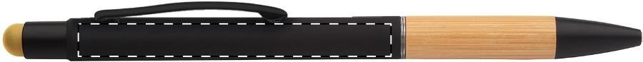 Kugelschreiber/Touchpen aus Aluminium mit Bambus-Griffzone, gummierter Oberfläche und Spezialbeschichtung für eine Spiegelgravur (abgestimmt mit Stylusfarbe), blauschreibend.