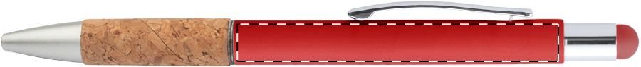 Kugelschreiber/Touchpen aus Aluminium mit Griffzone aus natürlichem Kork und matter Oberfläche. Blauschreibend.