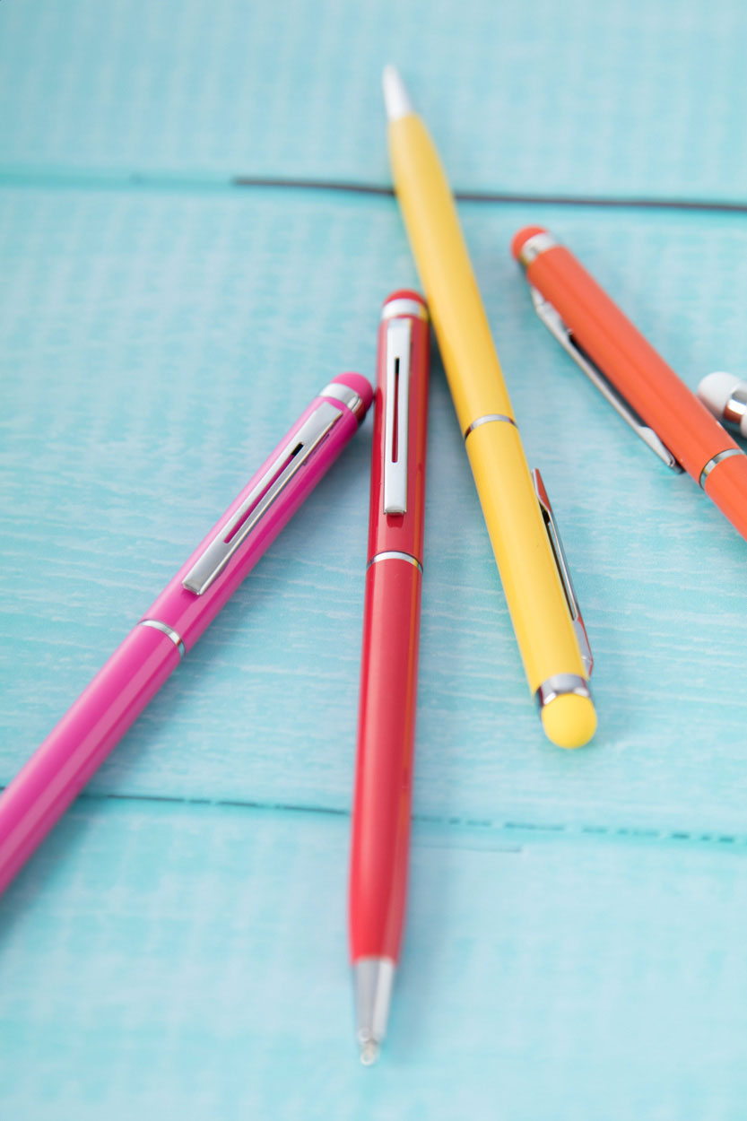 Aluminium-Kugelschreiber mit Touchpen und farblich abgestimmten Stylus, blauschreibend.