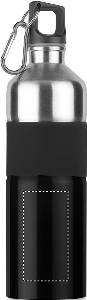Zweifarbige, einwandige Trinkflasche aus Edelstahl mit gummiertem Griffteil und Karabiner. Füllmenge: 750 ml. Der Karabiner ist NICHT als Sicherung beim Klettern geeignet. Auslaufsicher.Da der einwandige Flasche die Hitze nach Außen leiten kann, kann der Artikel heiß werden.