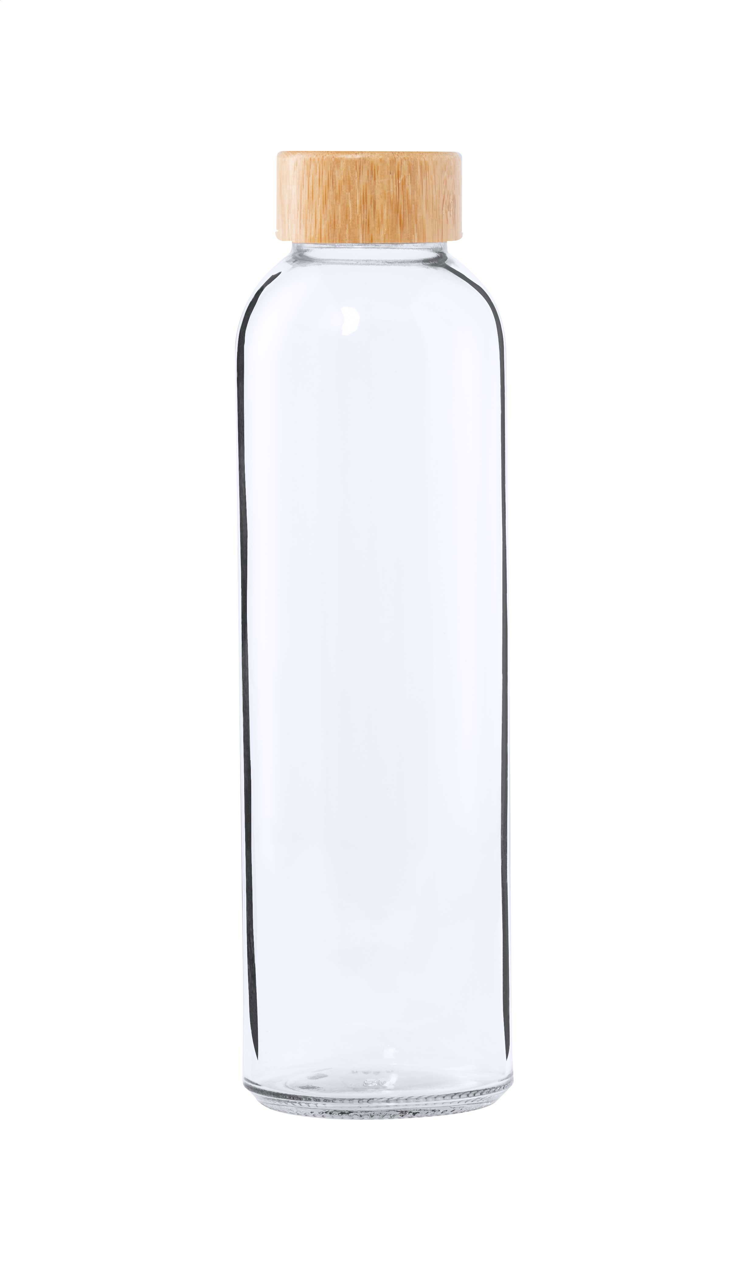Trinkflasche aus Glas mit Bambusdeckel. Füllmenge: 500 ml. Nicht geeignet für kohlensäurehaltige Getränke.