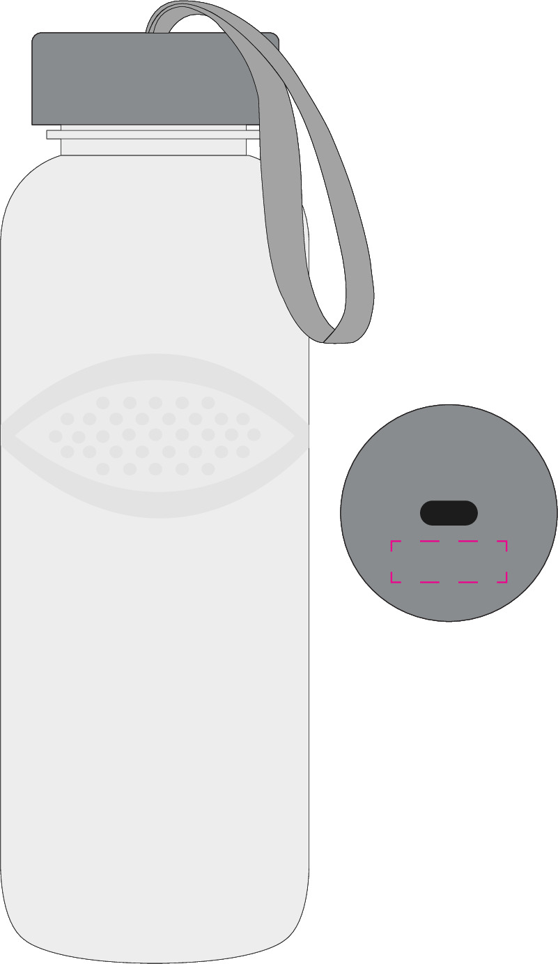 Wunderschöne geschmacksneutrale Trinkflasche aus robustem TritanTM und einem Deckel aus Edelstahl mit Schlaufe. Die Flasche ist mit zwei praktischen, gegenüberliegenden Griffmulden versehen, welche für einen sicheren Halt sorgen. Die große Öffnung ermöglicht ein leichtes Befüllen und Reinigen der Flasche. Der Verschluss ist leicht zu öffnen, auslaufsicher und für kohlensäurehaltige Getränke geeignet. Füllvolumen: 0,7 Liter.Material: KunststoffMaße: 0 x 0 x 0 x Ø: 75,00 mmGewicht: 92 gHinweis: Produktionsbedingt lassen sich Schwankungen im Druckstand nicht vermeiden.DruckmöglichkeitenPosition 1: Rundum, Griffmulden ausgespartDruckart: Premio TouchDruckgruppe: PTBMaximale Farben: 5Breite: 235 mmHöhe: 160 mmPosition 2: MittigDruckart: SiebdruckDruckgruppe: DCMaximale Farben: 5Breite: 180 mmHöhe: 80 mmPosition 3: Auf DeckelDruckart: LasergravurDruckgruppe: L1Maximale Farben: 1Breite: 28 mmHöhe: 10 mmPosition 4: Seitlich auf DeckelDruckart: LasergravurDruckgruppe: L1Maximale Farben: 1Breite: 38 mmHöhe: 18 mmFarbe: Transparent