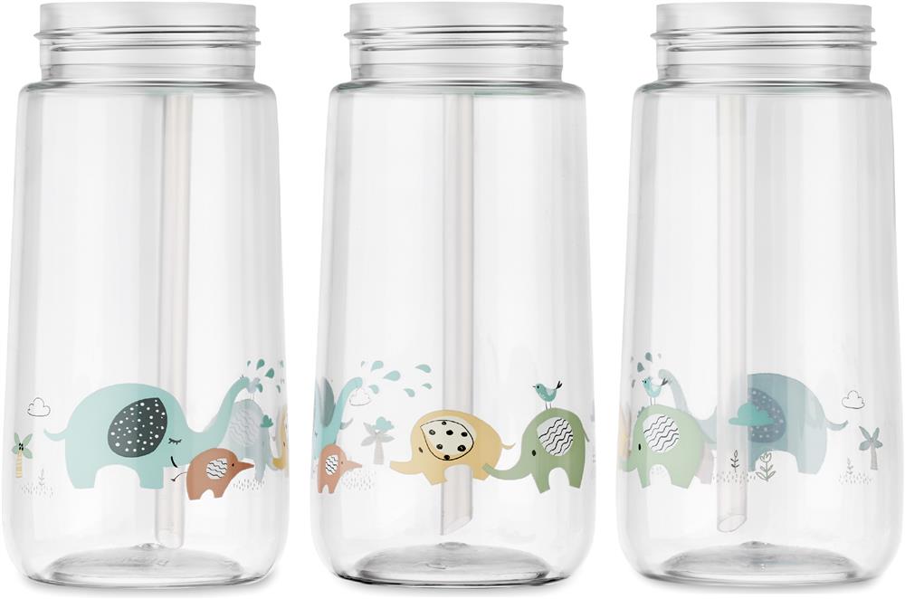 Trinkflasche für Kinder aus Tritan. Deckel mit integriertem Trinkhalm. Auslaufsicher. Füllmenge: 450 ml.