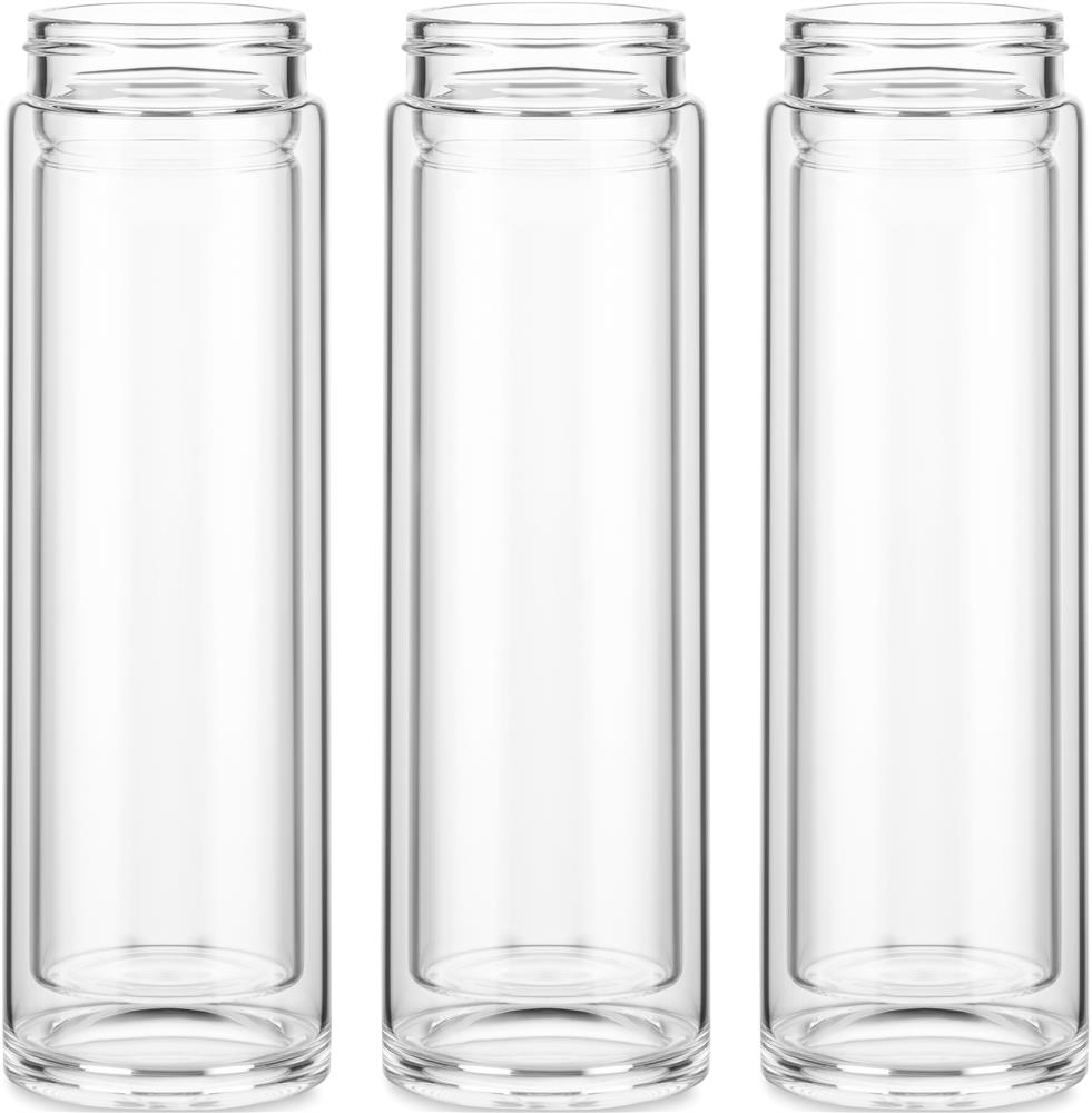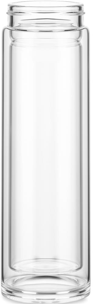 Doppelwandige Trinkflasche aus hochwertigem Borosilikat-Glas. Deckel aus Bambus mit Metallbügel. Mit Tee-Sieb. Füllmenge: 400 ml. Bambus ist ein natürliches Produkt, es kann daher zu leichten Abweichungen in Farbe, Dekor und Maßen kommen.